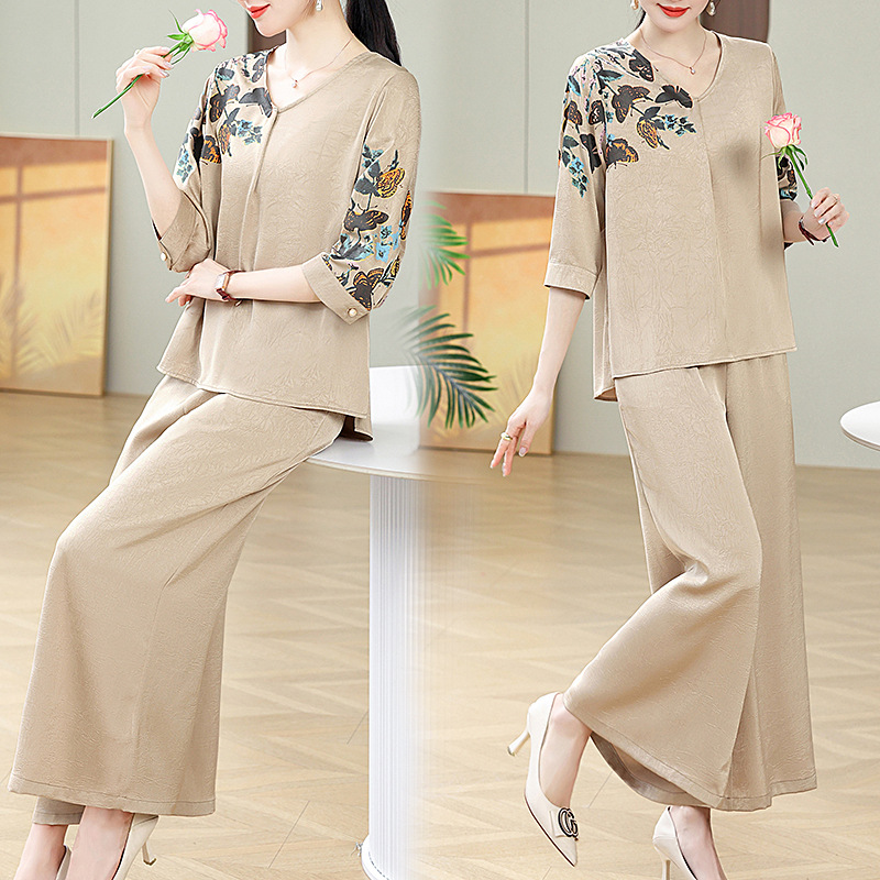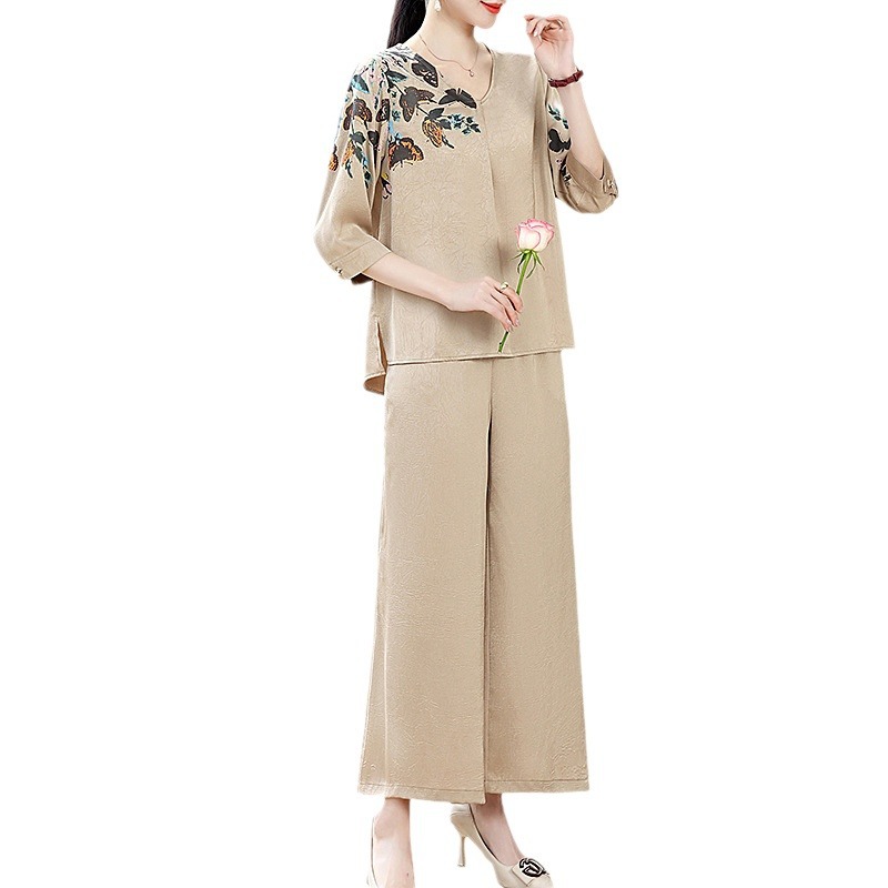 | nameOriginal | Middle-aged mother elegant suit 2024 summer new middle-aged and elderly seven-sleeve wide-leg pants jacket two-piece set |