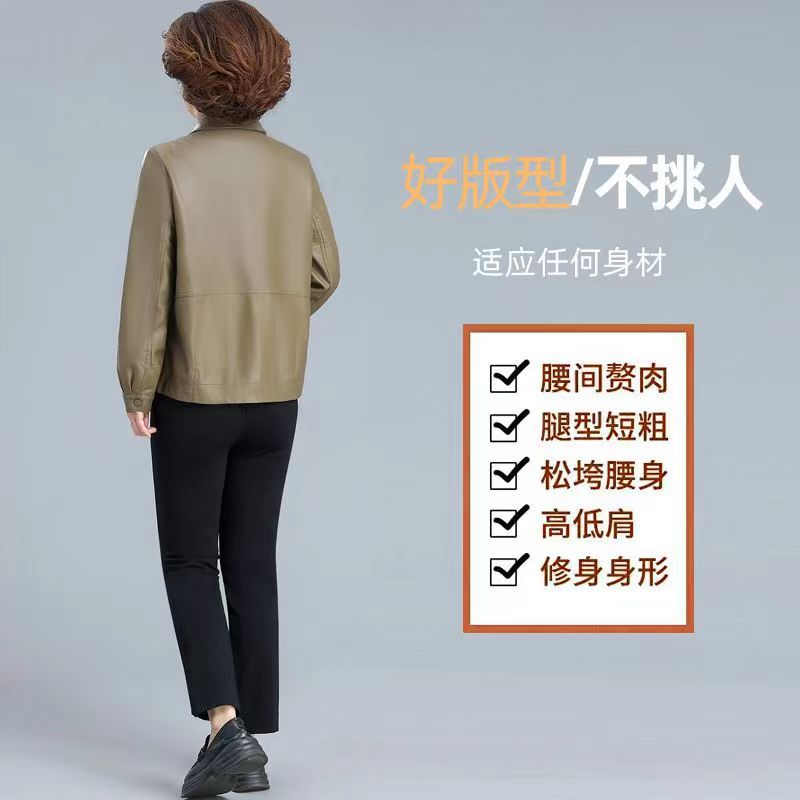 Middle-aged Mother Leather Coat Women's Short Spring and Autumn Thin Simple Loose Chinese Style Leather Jacket 2024 New Arrival
