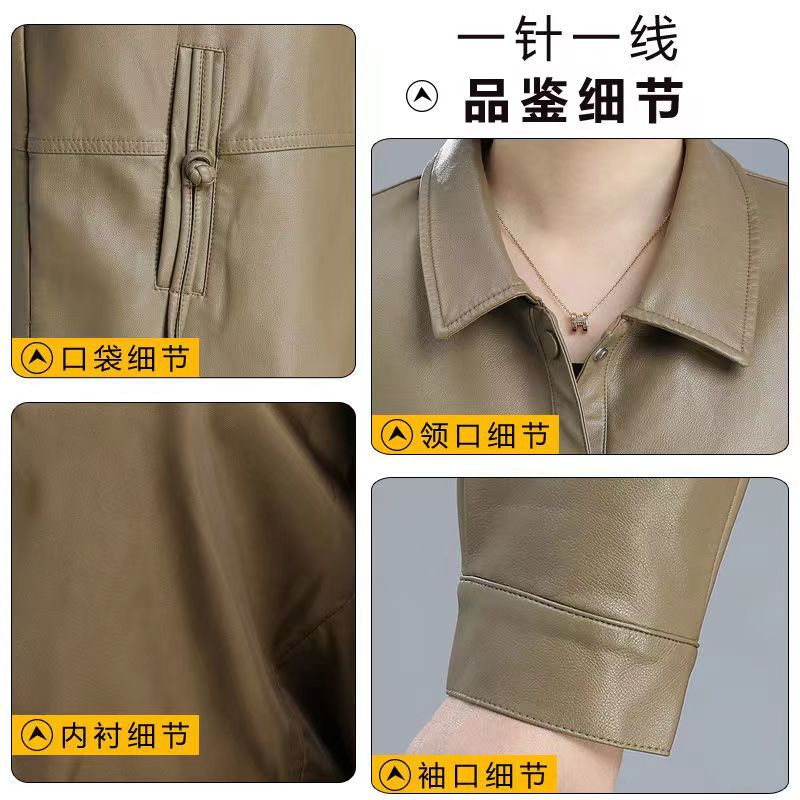 Middle-aged Mother Leather Coat Women’s Short Spring and Autumn Thin Simple Loose Chinese Style Leather Jacket 2024 New Arrival