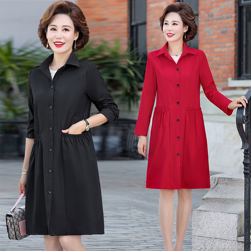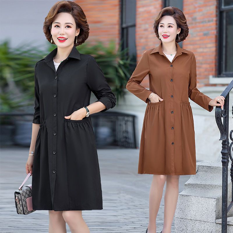 | nameOriginal | Middle-aged mother spring and autumn windbreaker western style middle-aged and elderly women's shirt autumn elegant loose long coat thin |