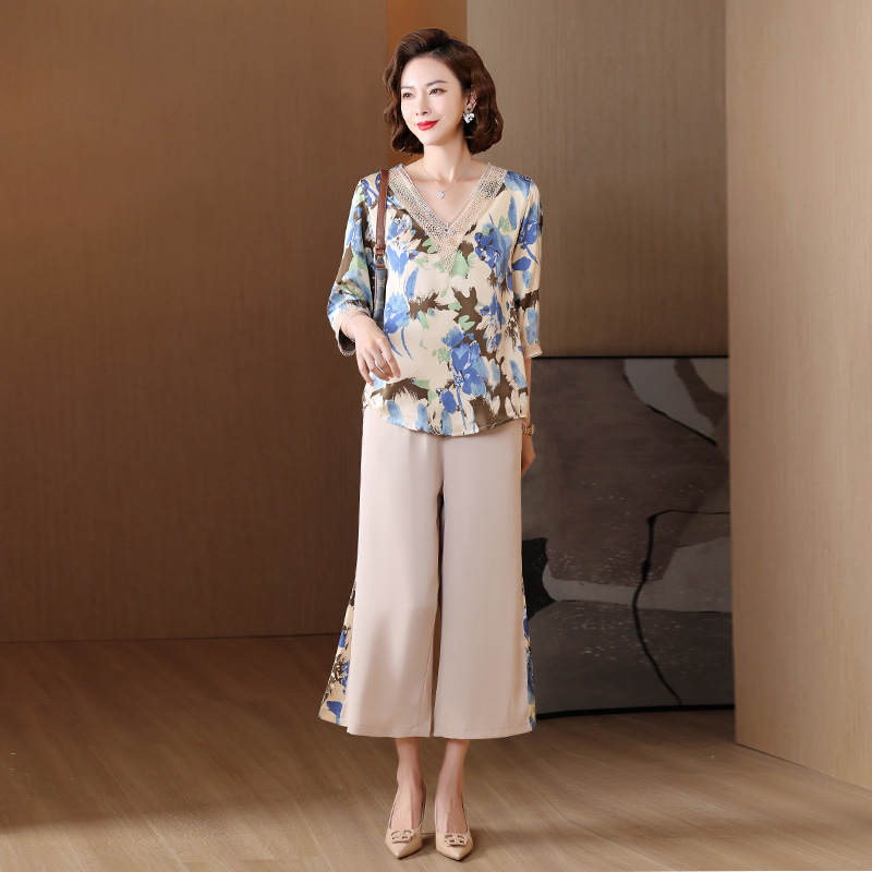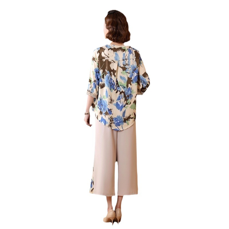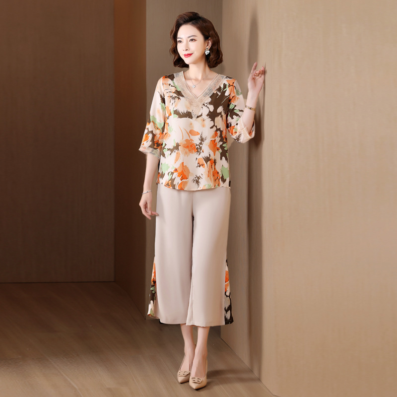 | nameOriginal | Middle-aged mother summer chiffon suit 2024 new middle-aged and elderly summer western fashion two-piece women's suit |