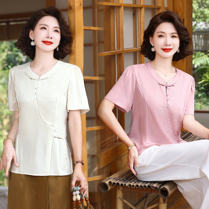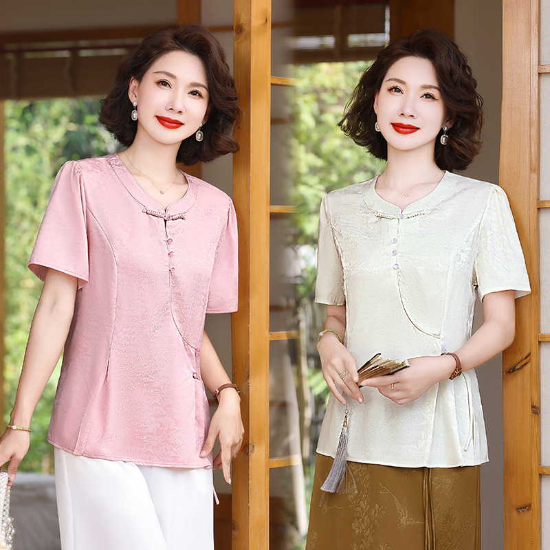| nameOriginal | Middle-aged mother summer clothes national style clothes small shirt 2024 western style middle-aged and elderly women's loose new Chinese style |