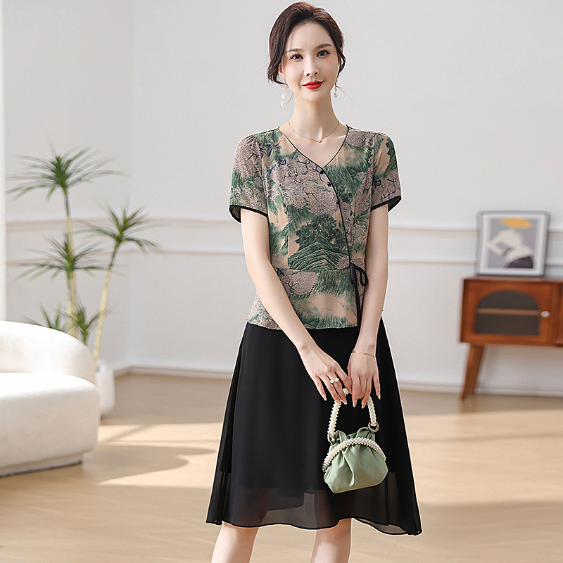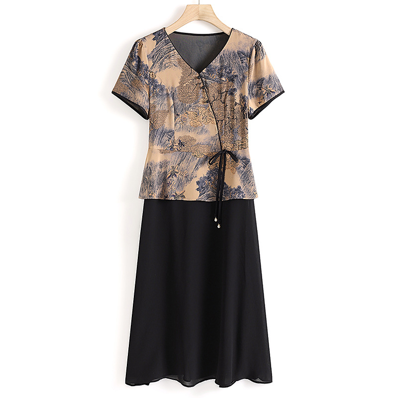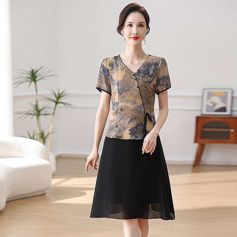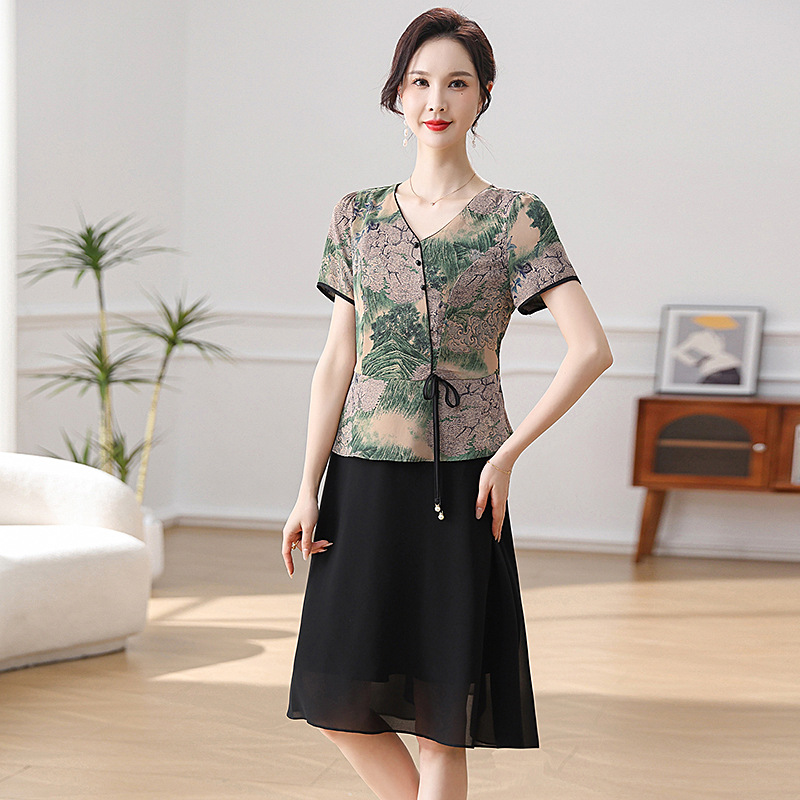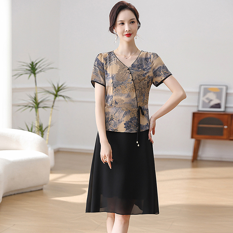 | nameOriginal | Middle-aged mother summer dress 2024 new foreign style middle-aged and elderly women's short sleeve national style age-reducing clothes skirt |