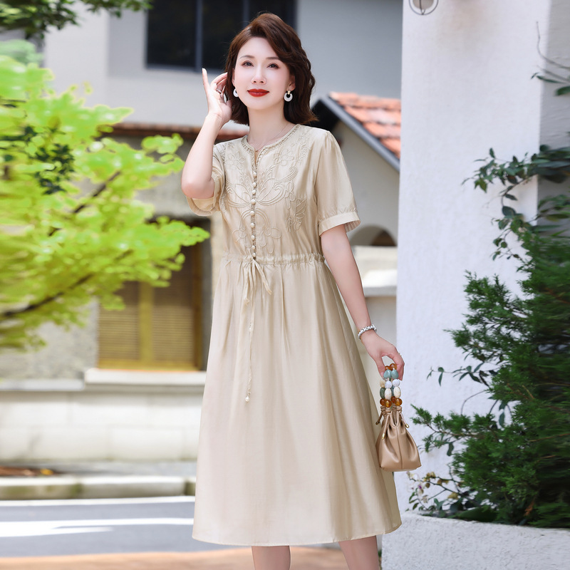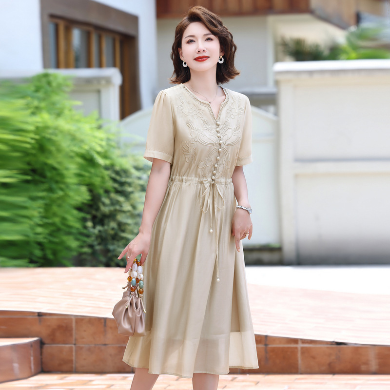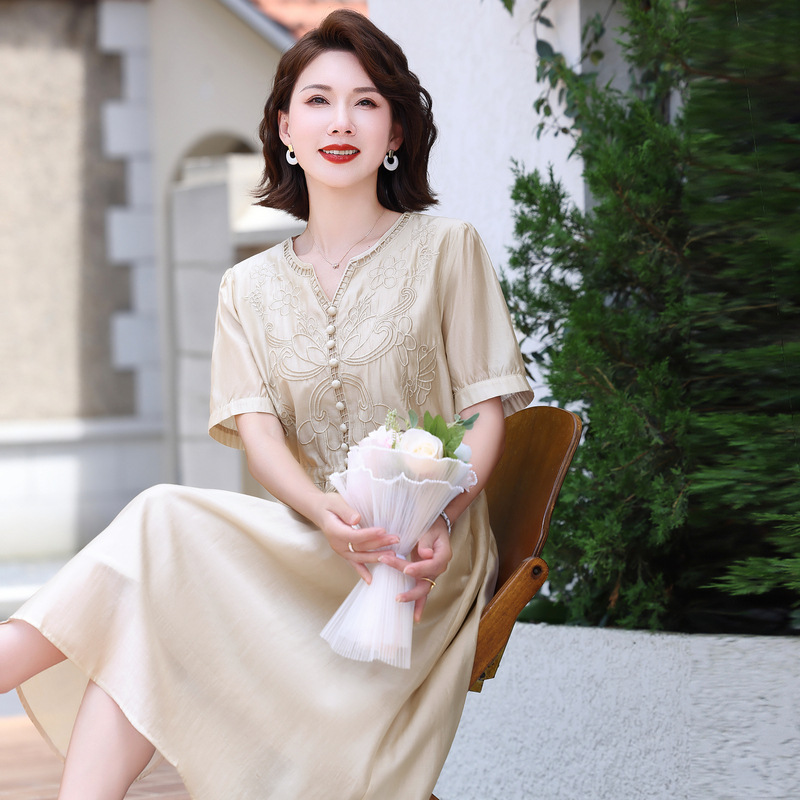 | nameOriginal | Middle-aged mother summer dress high-end sense of foreign style noble temperament 2024 new middle-aged and elderly women's summer skirt |