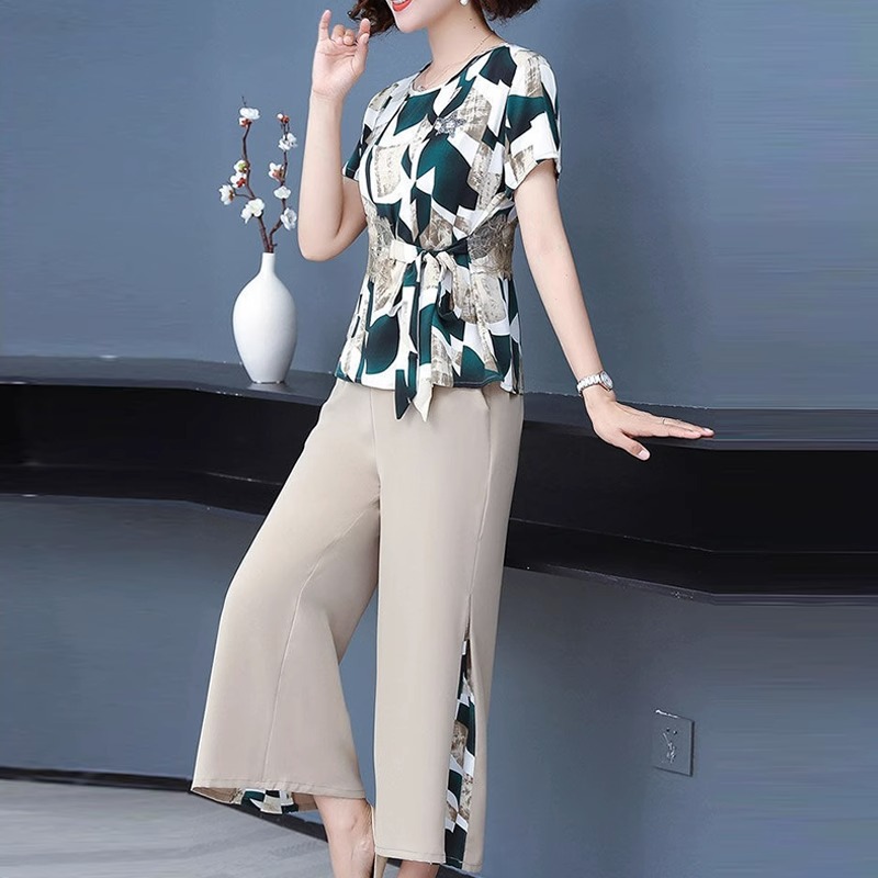 | nameOriginal | Middle-aged mother summer new style suit chiffon top short sleeve two-piece thin elderly women's clothing 2024 |