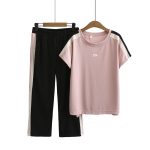 Middle-aged mother summer two-piece set fashion western-style age-reducing ice silk sports suit women’s drape casual top plus size
