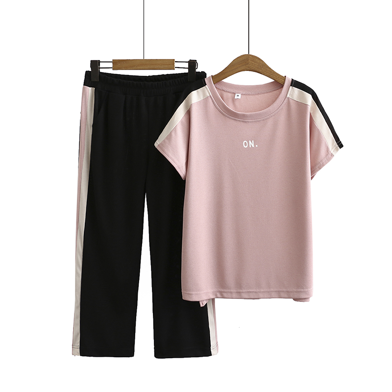 Middle-aged mother summer two-piece set fashion western-style age-reducing ice silk sports suit women's drape casual top plus size