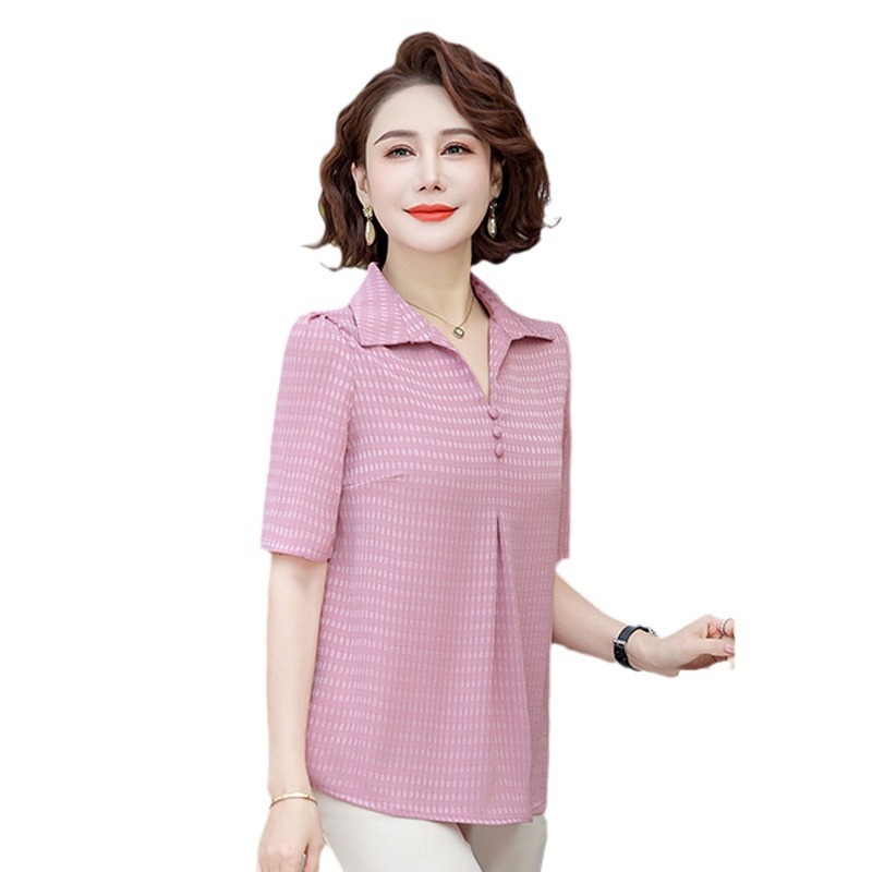 | nameOriginal | Middle-aged mother summer western style 2024 new lapel short sleeve t-shirt 40 years old 50 middle-aged women's fashion top |