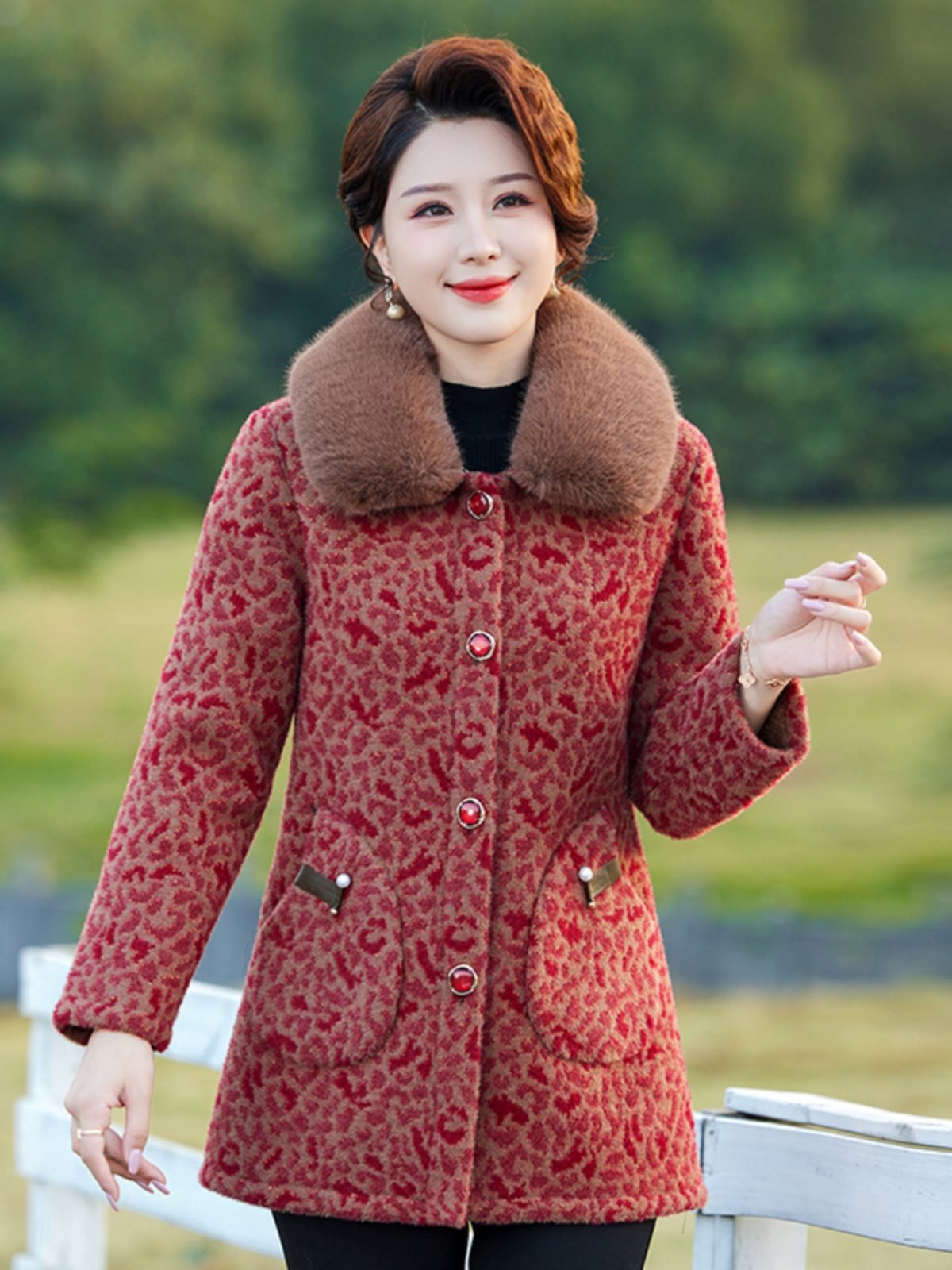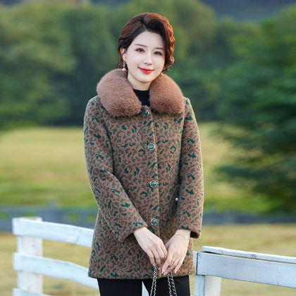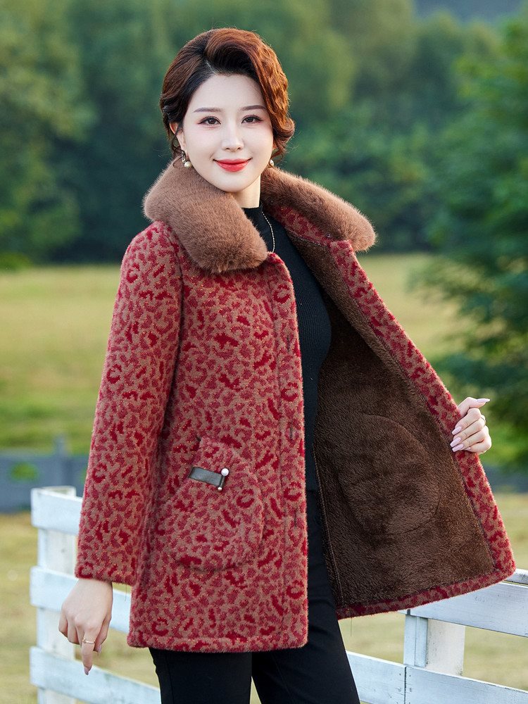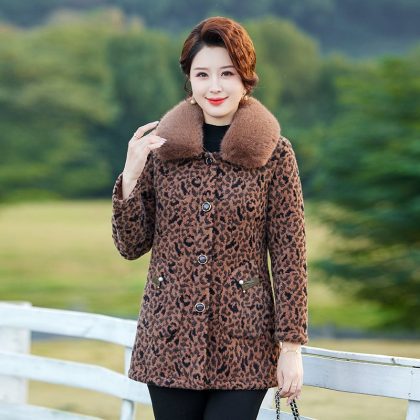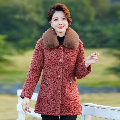 Middle-aged Mother Winter Clothes fleece-lined Thickened Cotton Coat Western Style Mink Velvet Coat Middle-aged and Elderly Women’s plus size Warm Cotton Coat