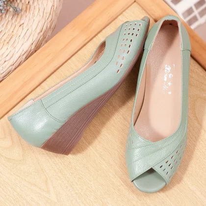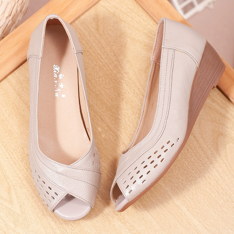 | nameOriginal | Middle-aged mother's fashionable leather wedge sandals |