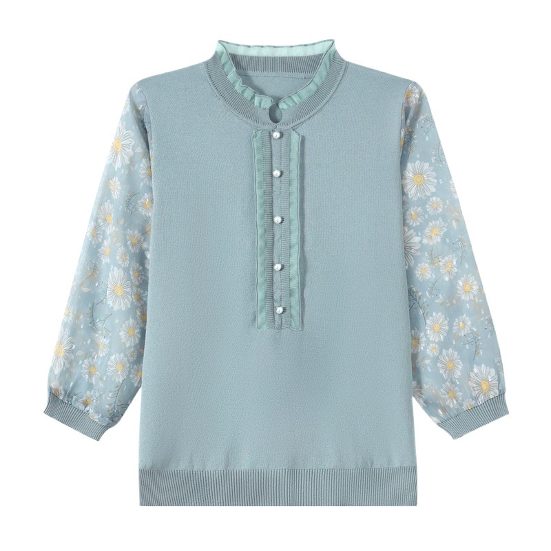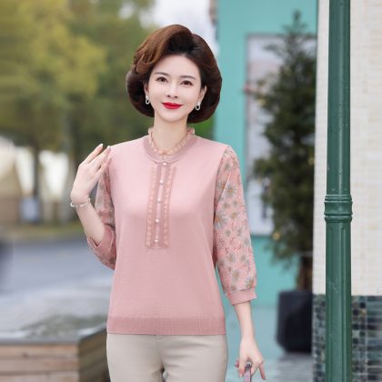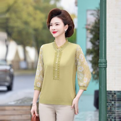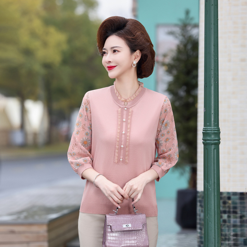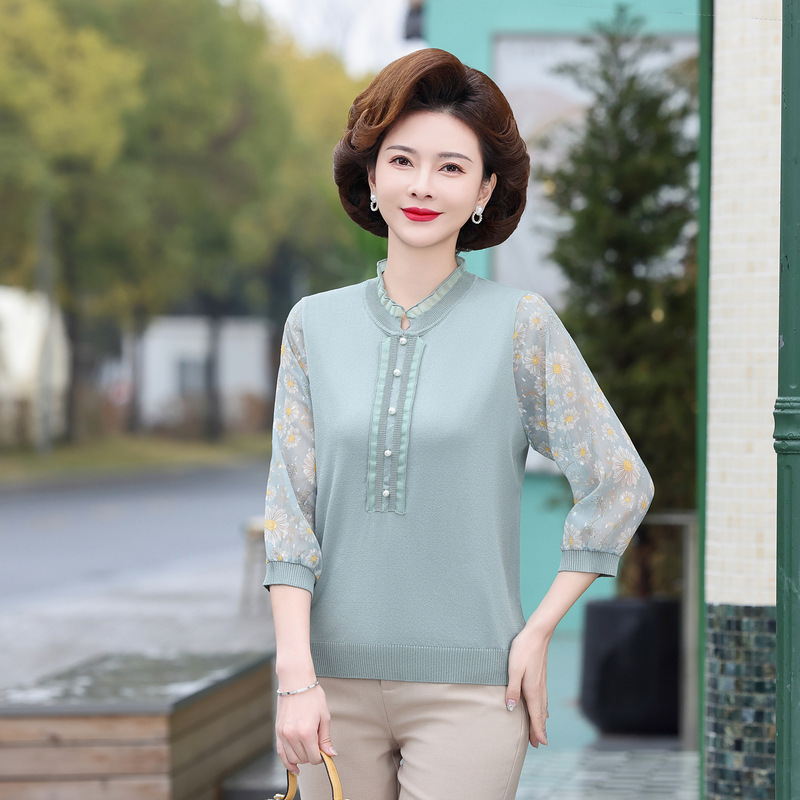 | nameOriginal | Middle-aged Mother's Spring Dress Fashionable Loose Base Shirt Middle-aged and Elderly Spring and Summer Gauze Sleeve Knitted Top Thin Shirt Small Shirt |