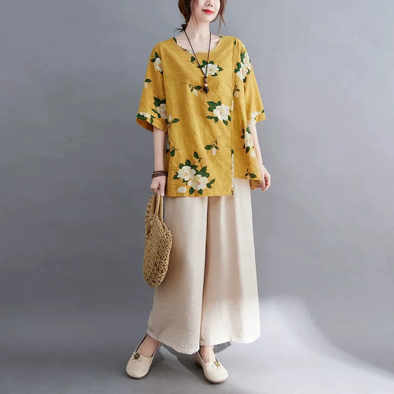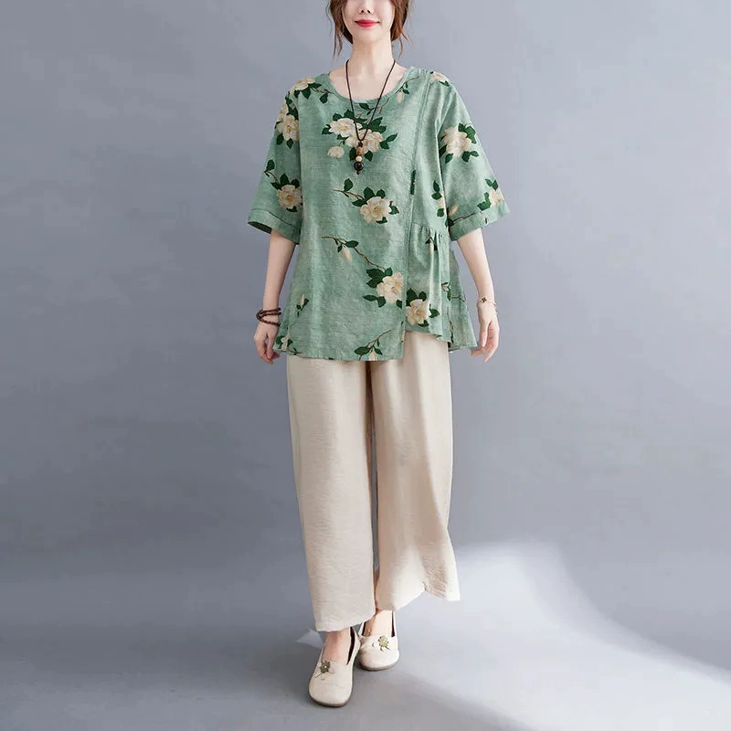 | nameOriginal | Middle-aged mother's summer cotton and linen suit, new style, middle-aged and elderly women's summer short-sleeved T-shirt, wide-leg pants two-piece set |