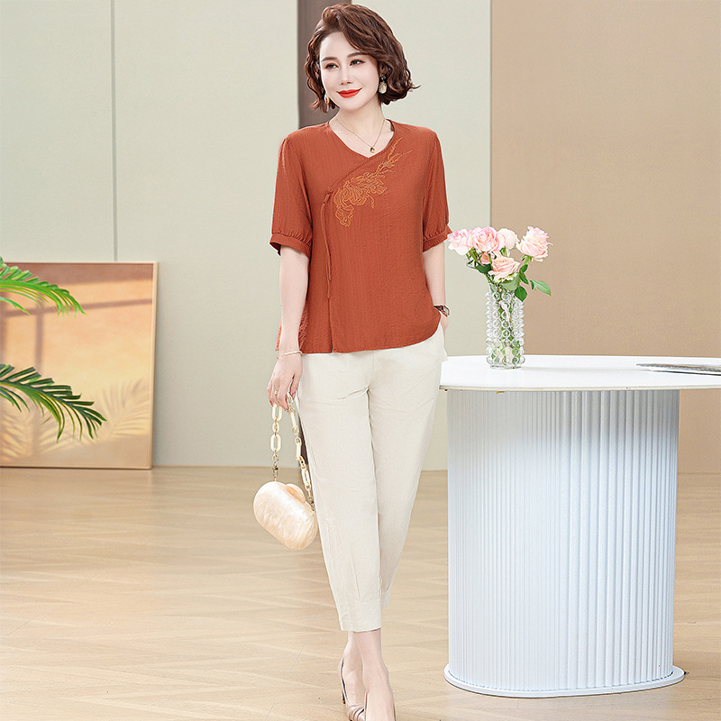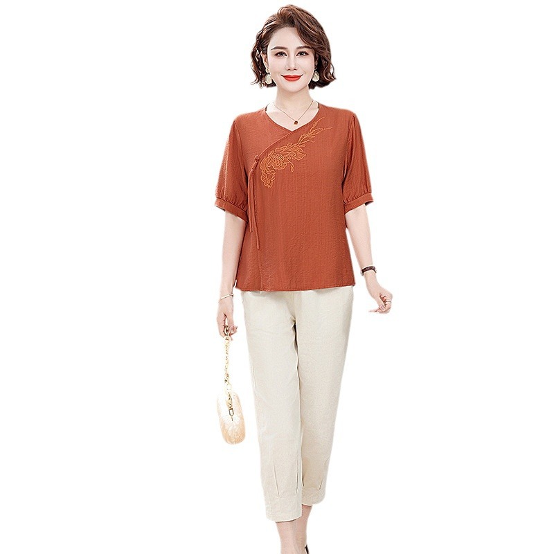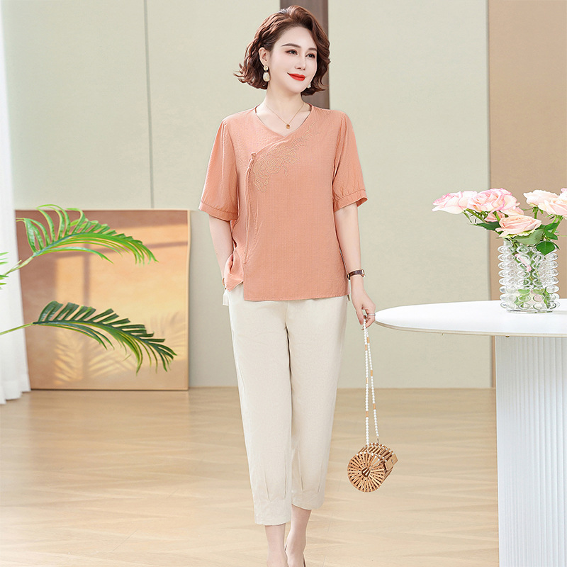 | nameOriginal | Middle-aged mother's summer cotton and linen two-piece short-sleeved shirt jacket pants suit summer western style fashion temperament new |