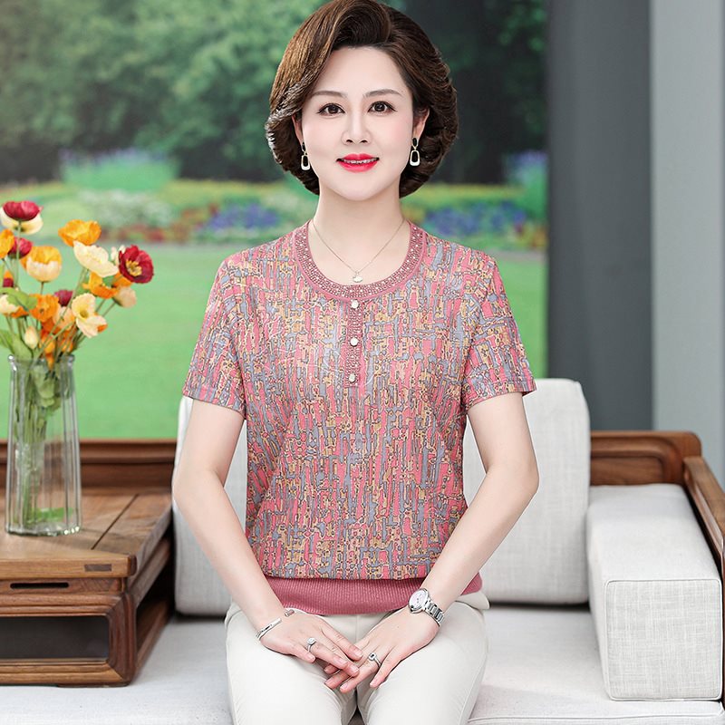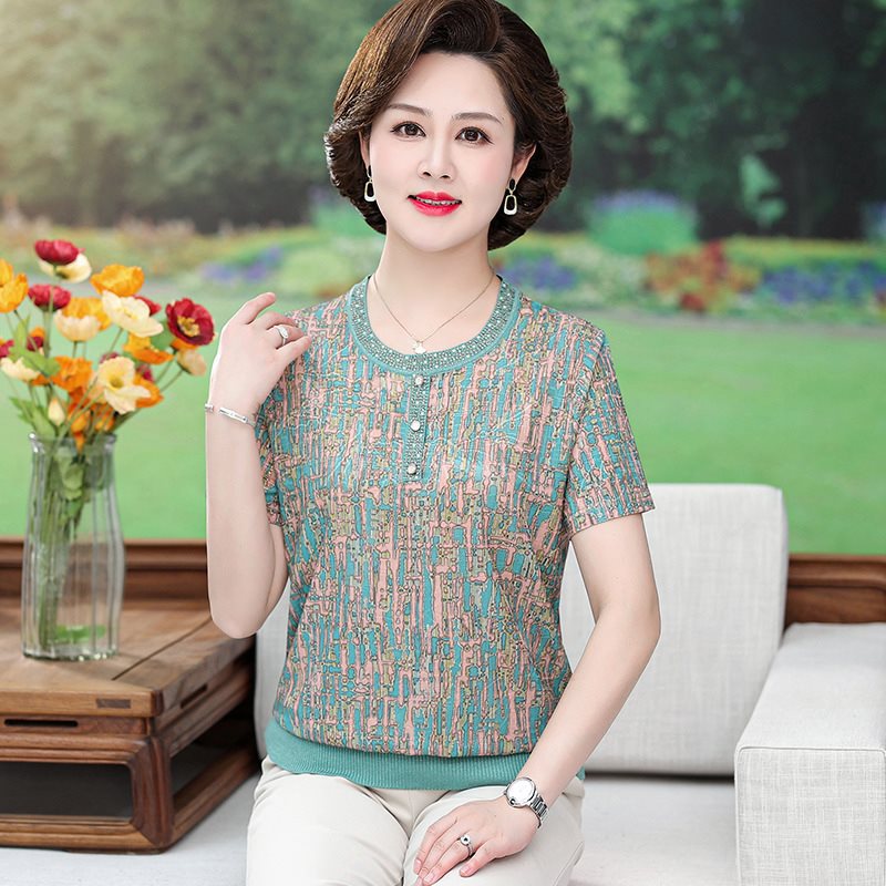 | nameOriginal | Middle-aged Mother's Summer Dress Western-style Short Ice Silk T-shirt Round Neck Thin Small Shirt Middle-aged and Elderly Women's Short-sleeved plus size T-shirt |