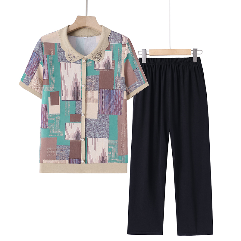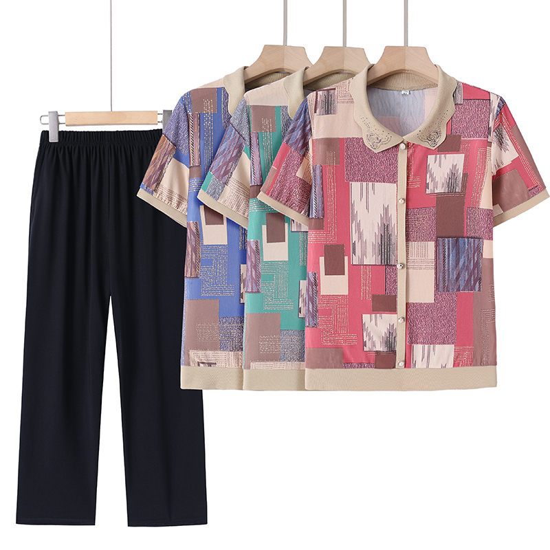 | nameOriginal | Middle-aged Mother's Summer suit Western-style Short-sleeved T-shirt Loose Top Middle-aged Women's Two-piece Suit |