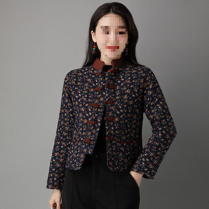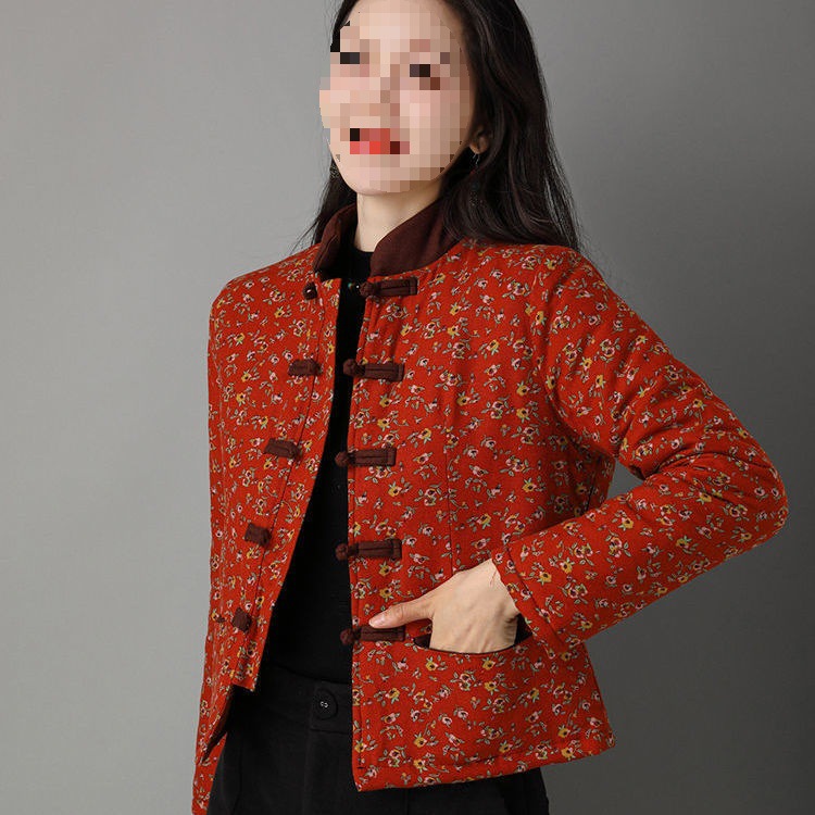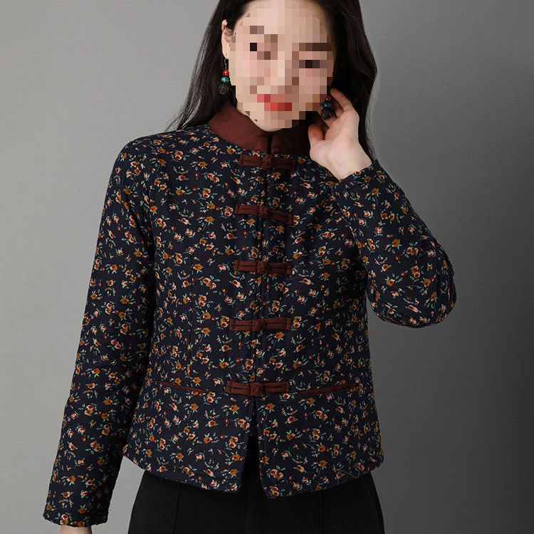 | nameOriginal | Middle-aged mother's winter cotton-padded jacket Chinese-style retro Tang suit with buckle stand collar short ethnic style floral cotton-padded jacket for women |