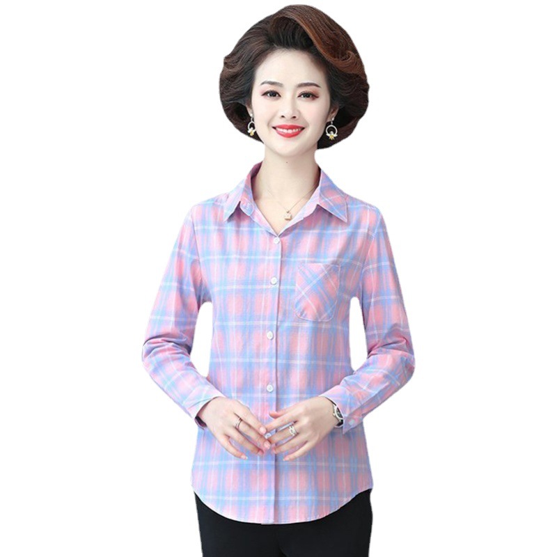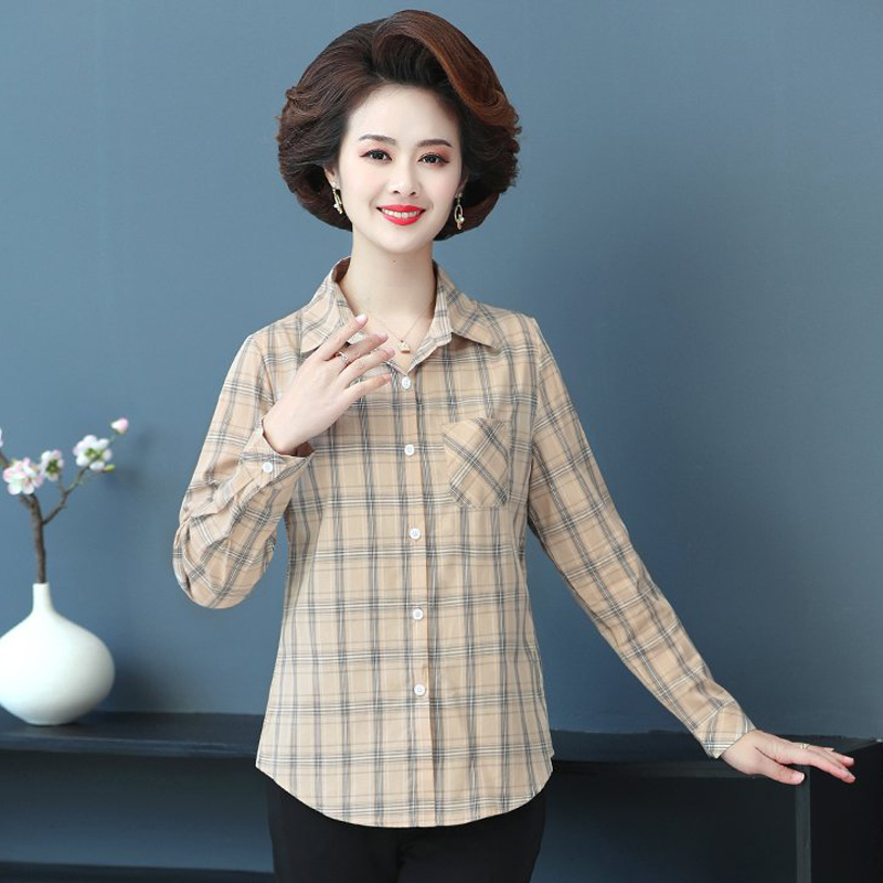 | nameOriginal | Middle-aged Spring and Autumn Clothes Shirt Women's Long-sleeved Western Style Plaid Top Clothes Middle-aged Mother's Summer Cotton Casual Shirt |