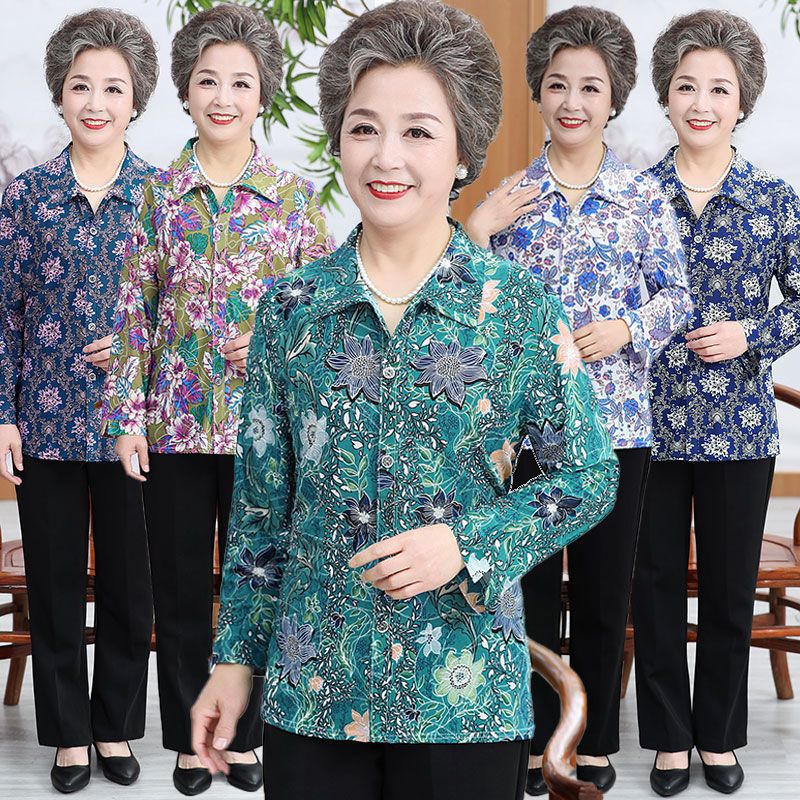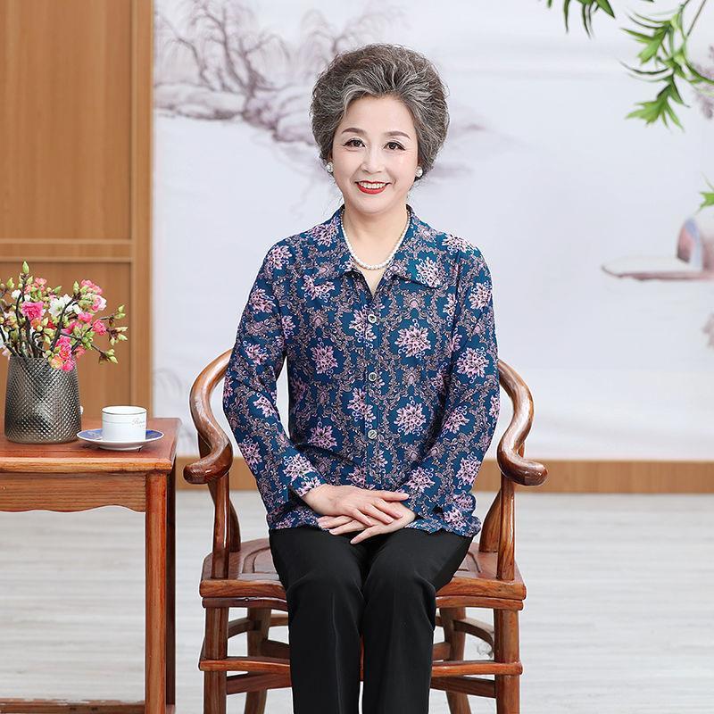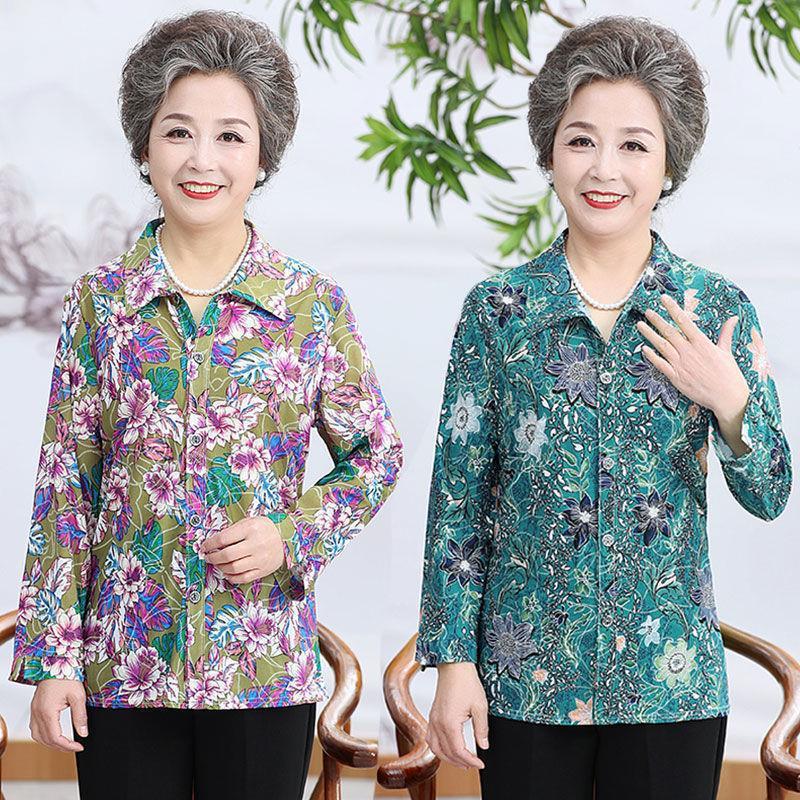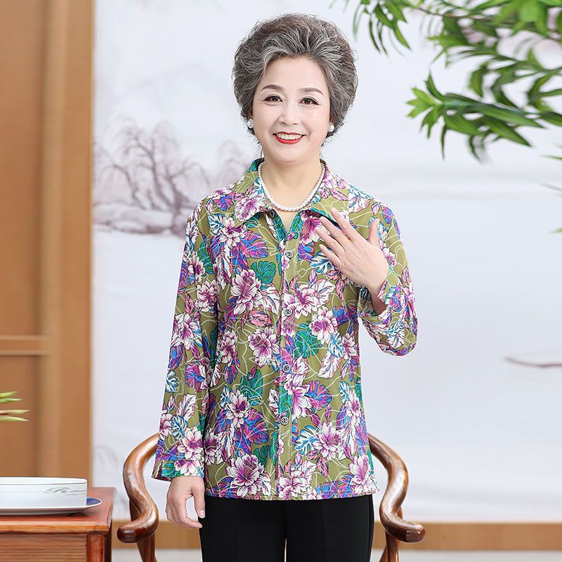| nameOriginal | Middle-aged Spring and Autumn Shirt Women's Long-sleeved Grandma's Lapel Ice Silk Shirt Old Lady's Mother's Loose Top |