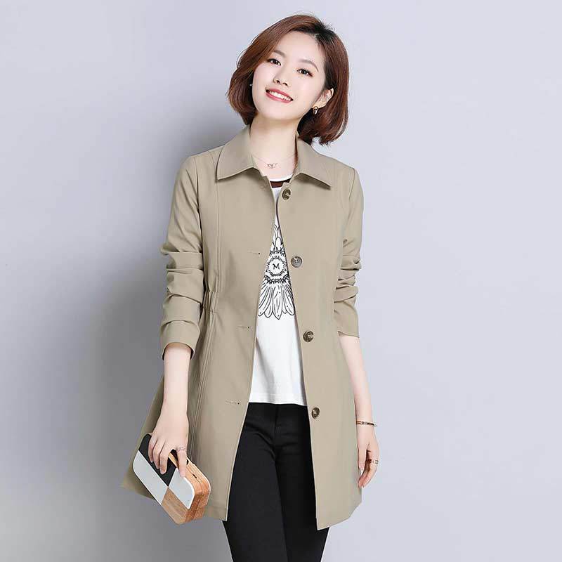 Middle-aged Trenchcoat Women's Mid-length 2019 New Arrival Mother's Korean-style Commuter Spring and Autumn Thin Coat Women's Long-sleeved Slim-fit