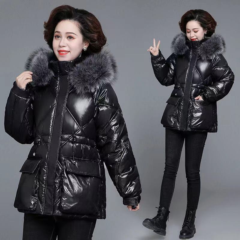 Middle-aged winter cotton-padded jacket 2023 new mother bright down cotton-padded jacket for middle-aged people cotton-padded jacket for the elderly