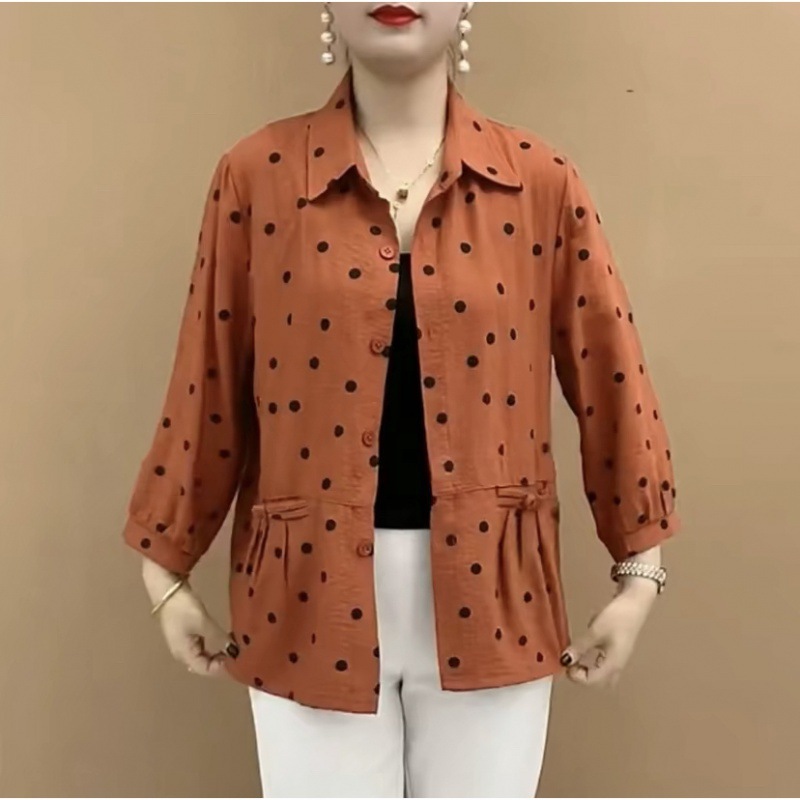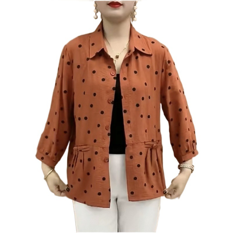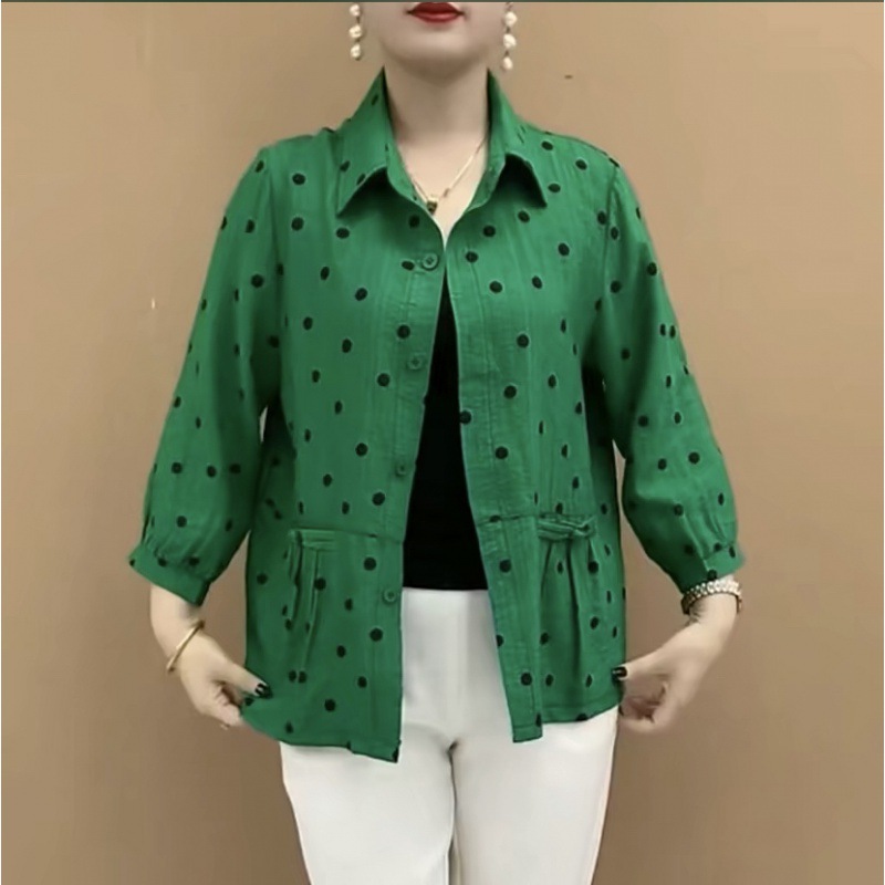 | nameOriginal | Middle-aged Women's plus size Polka Dot Sun Protection Cardigan Jacket Spring Mother's New Arrival Nine-point Sleeve Thin Loose Shirt |