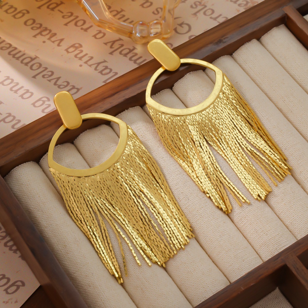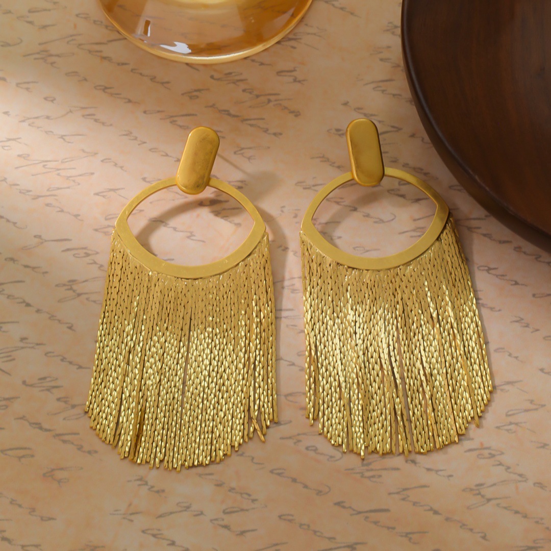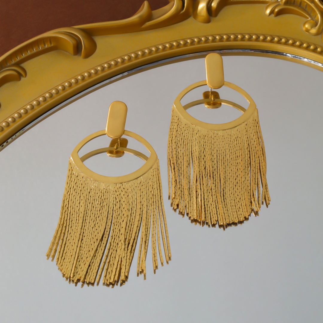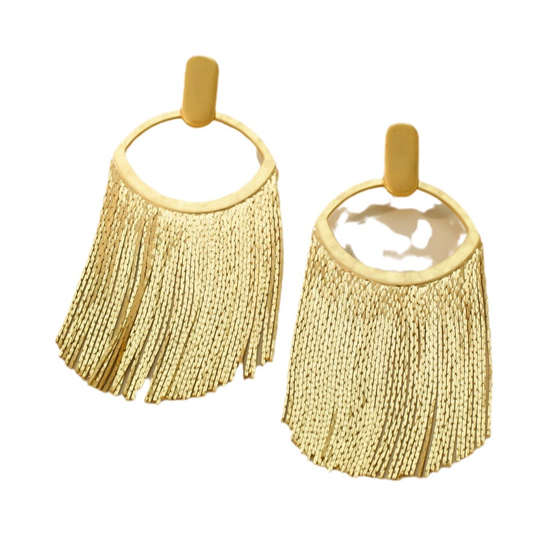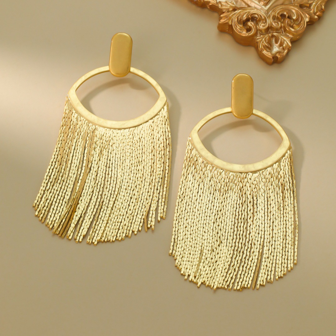 Middle ancient Vintage copper plated real gold big tassel fashion exaggerated retro design heavy industry quality 925 silver needle