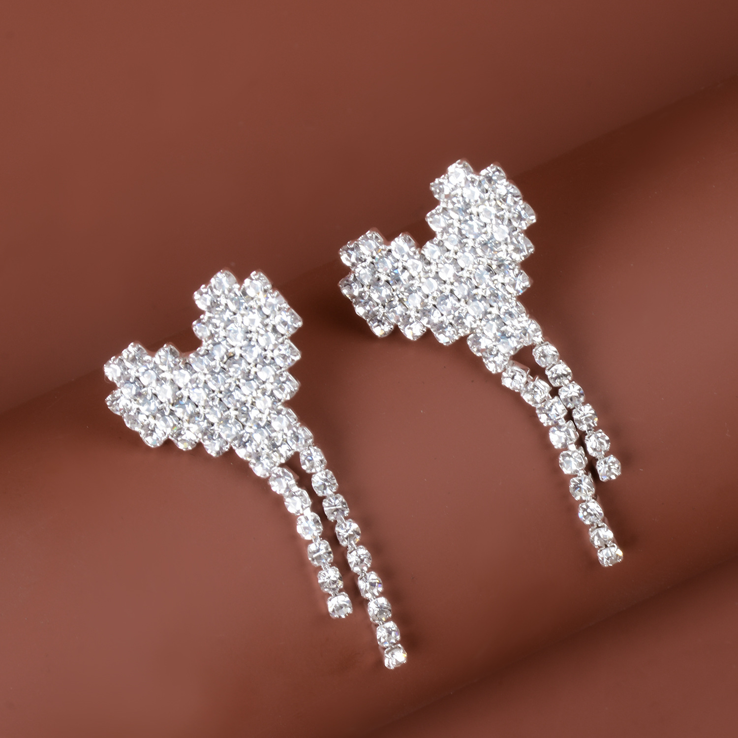 | nameOriginal | Middle East cross-border simple personalized rhinestone heart-shaped full diamond earrings tassel earrings |
