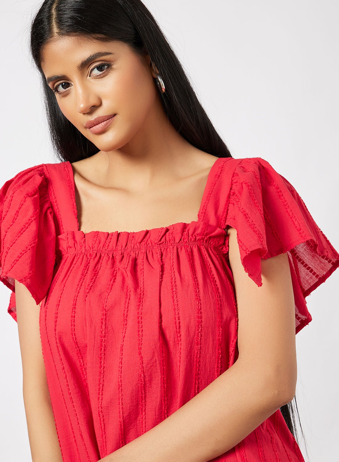 This product is a part of Mango’s Committed collection and is made of textured and comfortable cotton fabric. It features an all-over embroidered pattern, square neck, and short, flared sleeves. The relaxed fit and midi length make it a comfortable and stylish choice. Please follow the care label instructions when washing. The model is approximately 180cm tall and is wearing a size S.
