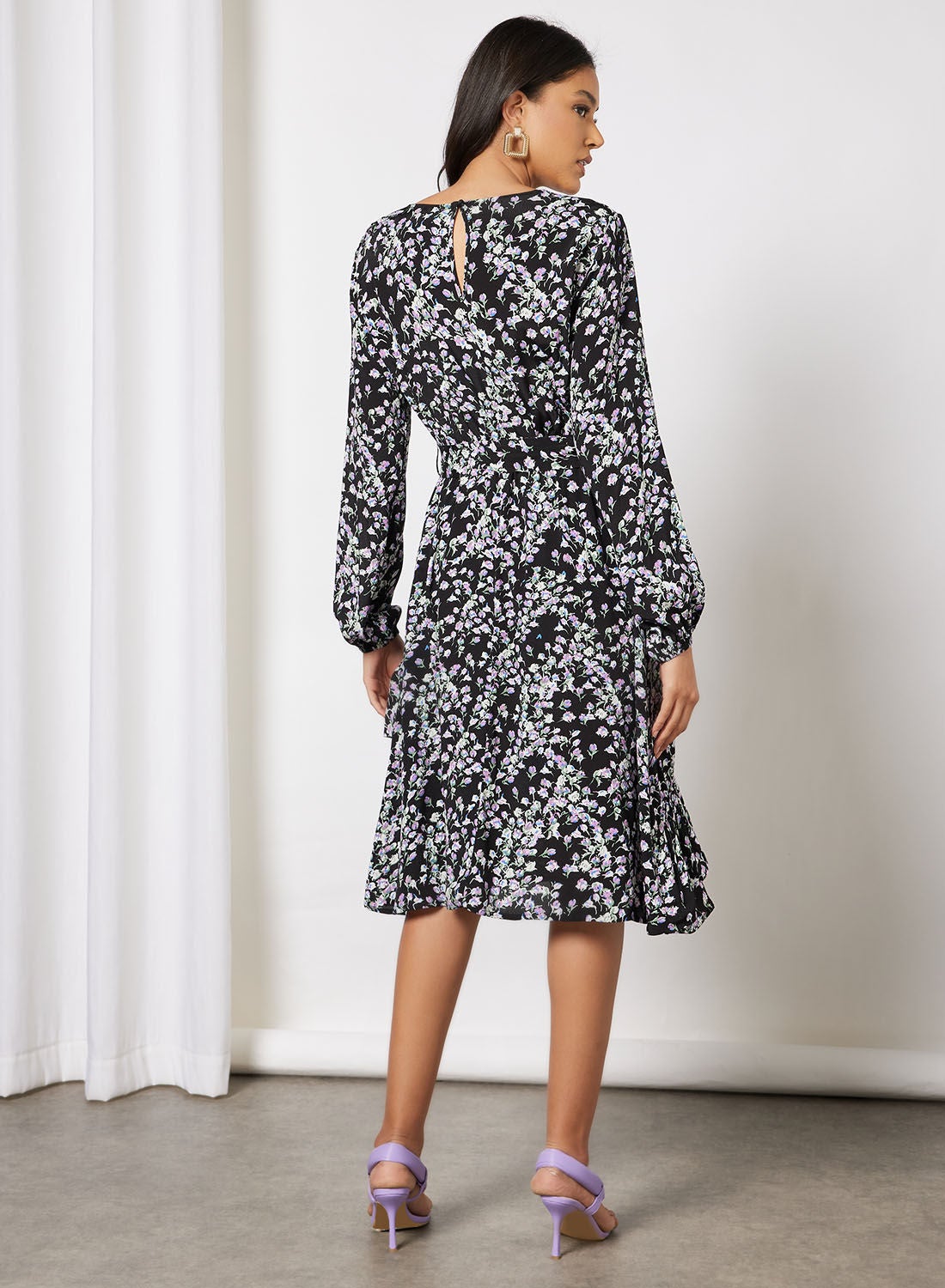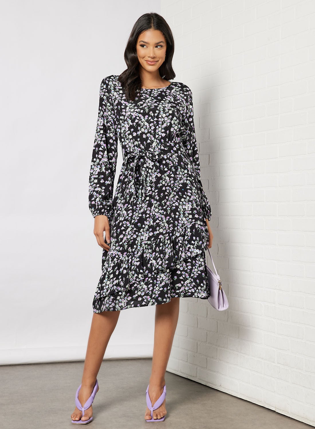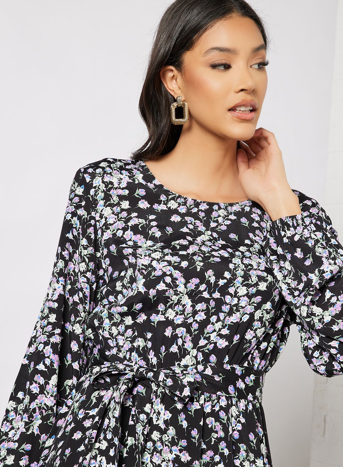 This product features a comfortable and airy viscose material that is gentle on the skin. It has a round neckline and long sleeves with elastic cuffs for a snug fit. The waist can be adjusted with a self-tie belt, and the back has a keyhole with a button closure. Please follow the care label instructions when washing. The model is approximately 179cm tall and is wearing a size 36.