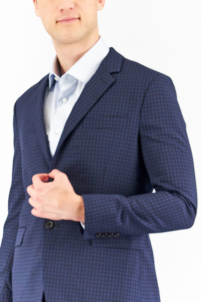Care : Dry clean, Fit : Regular fit, Size shown : Inches, Suit Type : Suit Jackets, Type of Neckline & Collar : Notched collar , Disclaimer : Product color may slightly vary due to photographic lighting sources or your monitor settings., Fabrics : 100% Wool, Occasion : Formal, Pattern & Print : Gingham pattern, Color Family : Navy Blue,