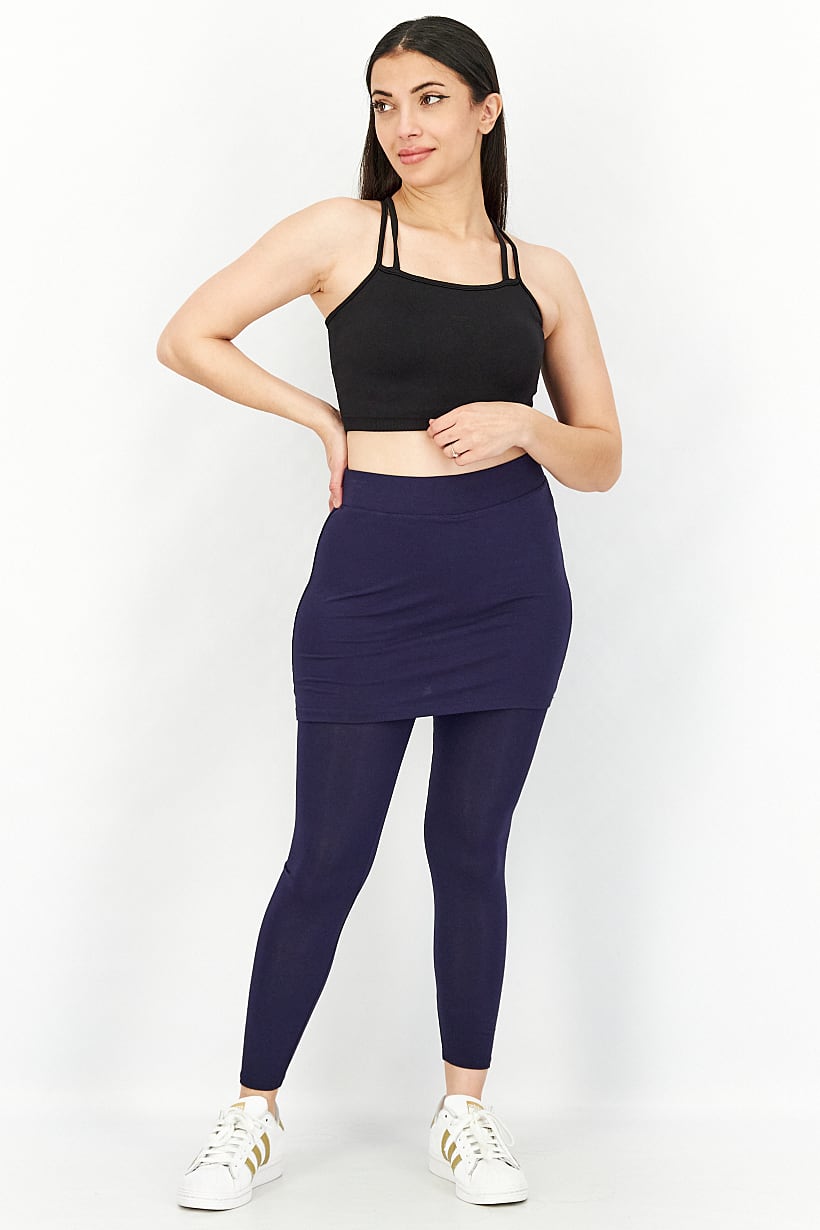 Women Sportswear Fit Jersey Knit Skirted Ankle Leggings, Midnight