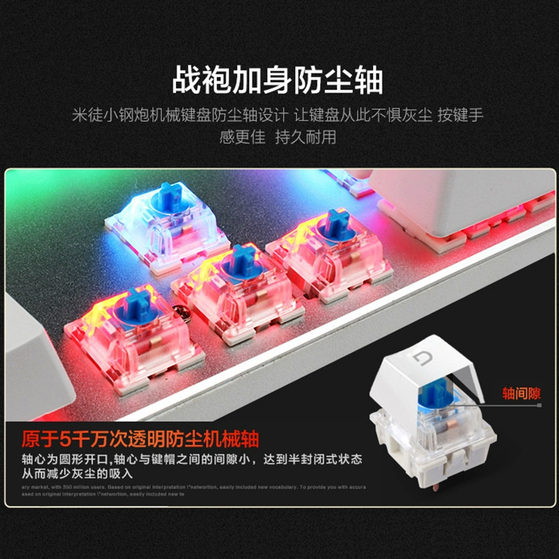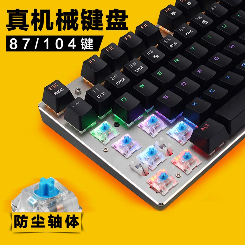 | nameOriginal | Miitu mechanical keyboard ZERO small steel cannon game LOL e-sports CF color light DNF green axis 104 keys 87 USB key cap |