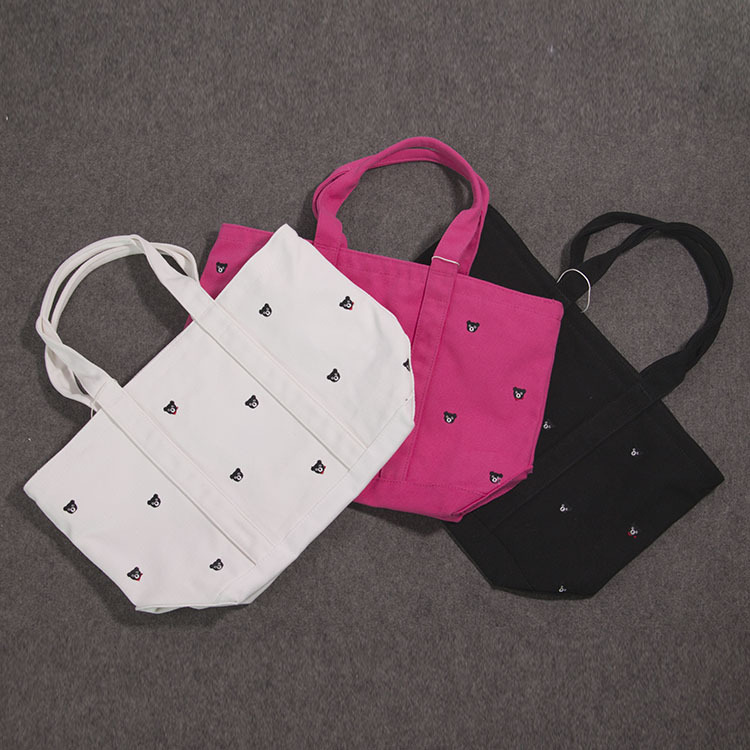 miki Children’s Wear Japanese New Casual Canvas Bag Cartoon Bear Head Full Embroidery Mummy Bag Handbag for Hair