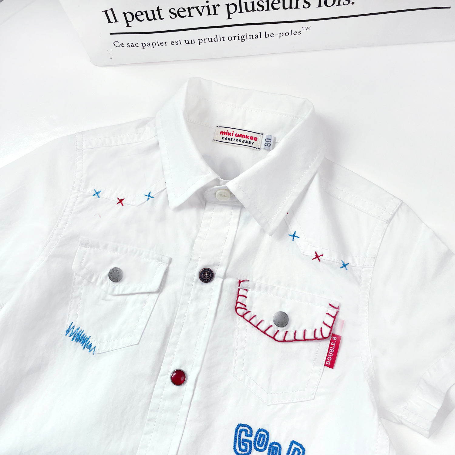miki24 summer Japanese soft heavy industry small and medium boys and girls wear DB black bear line embroidery retro buckle shirt