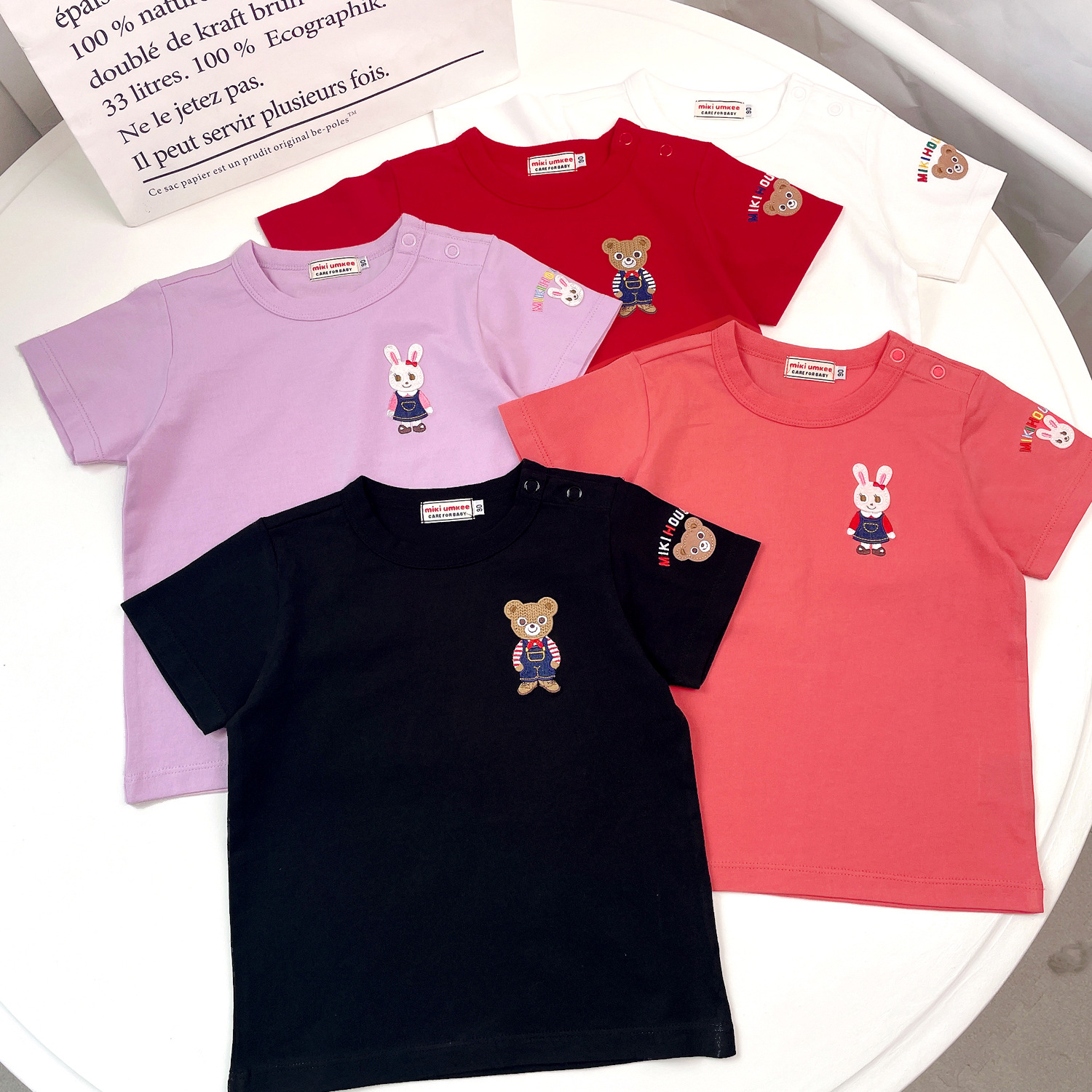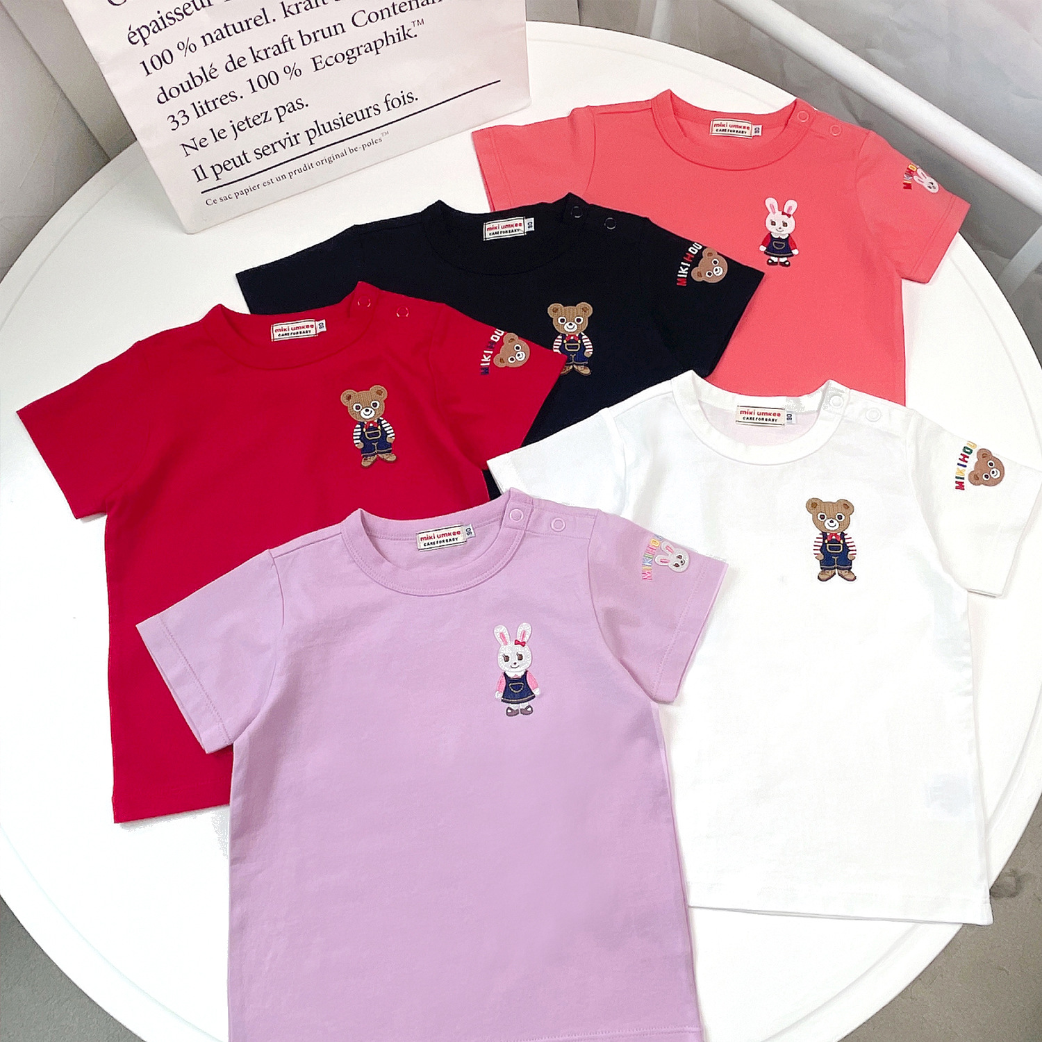 | nameOriginal | miki24 summer Japanese style cotton cartoon five-color Bear rabbit embroidered round neck short sleeve t-shirt for boys and girls |