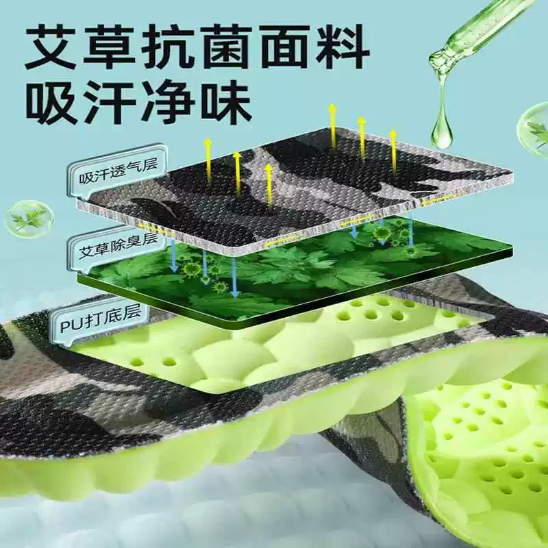 Military training thickened insole stepping on shit, sweat absorption, anti -stinky shock absorption insole, soft long stand, not tired sports insoles comfortable and breathable