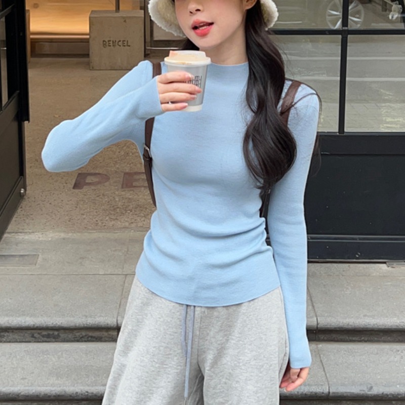 Milk Blue Sweater Half-turtleneck Base Shirt Women’s Autumn and Winter Inner Slim-fit Knitted All-match Top Slimming