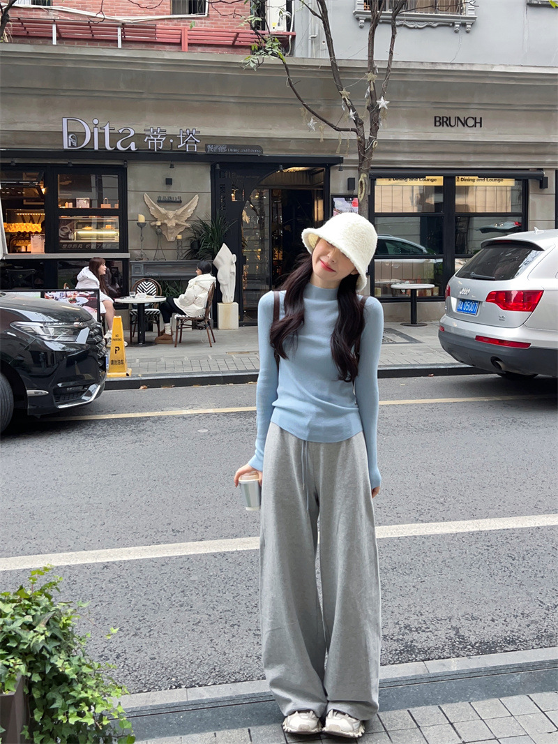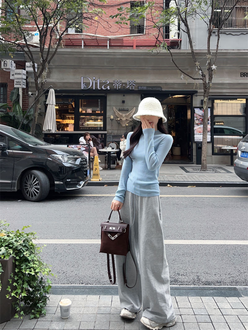 Milk Blue Sweater Half-turtleneck Base Shirt Women's Autumn and Winter Inner Slim-fit Knitted All-match Top Slimming