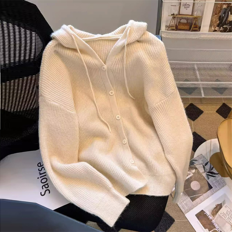 Milk Soft Waxy fufu Knitted Cardigan Women's Autumn and Winter New Slimming Hooded Elegant Gentle Style Sweater Coat Women