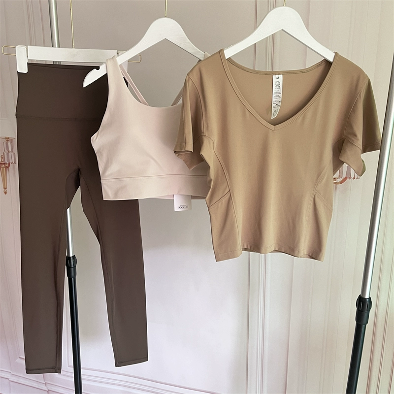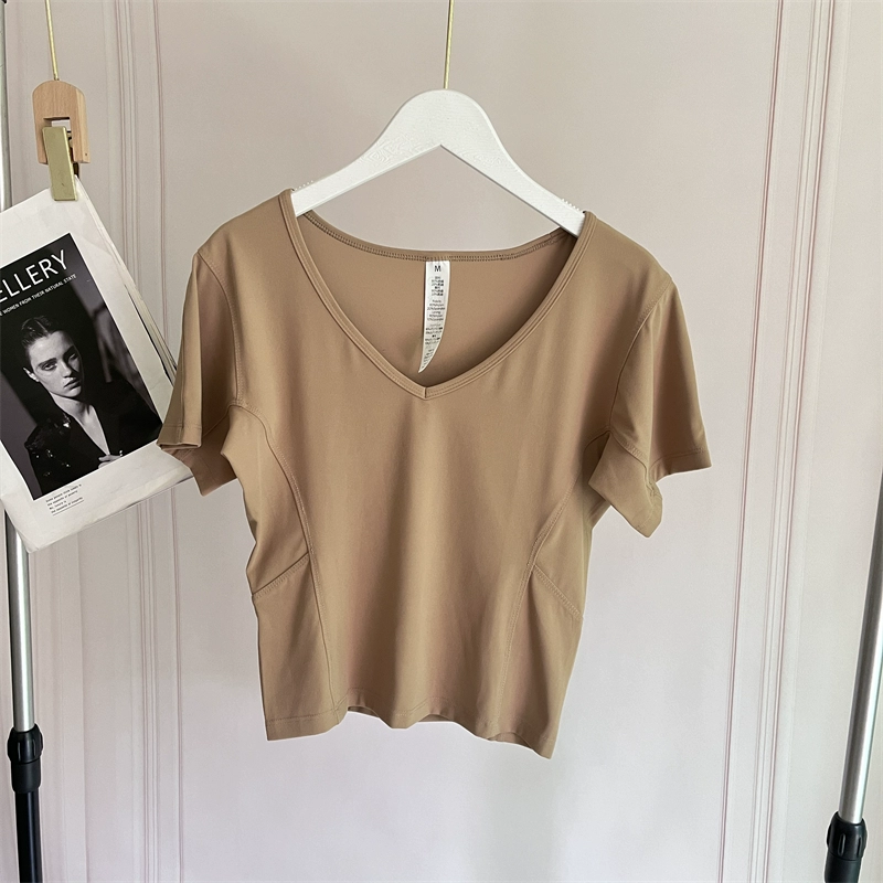 Milk tea color female naked sensation sweat absorption, fast dry elastic short sleeves