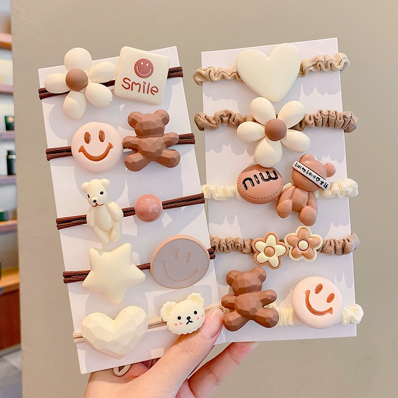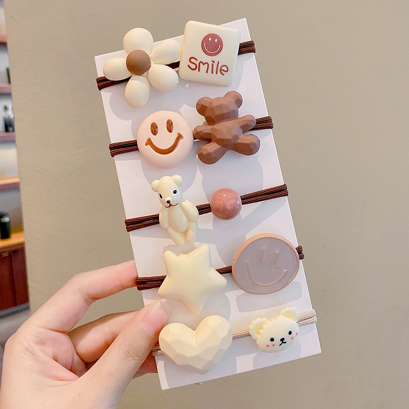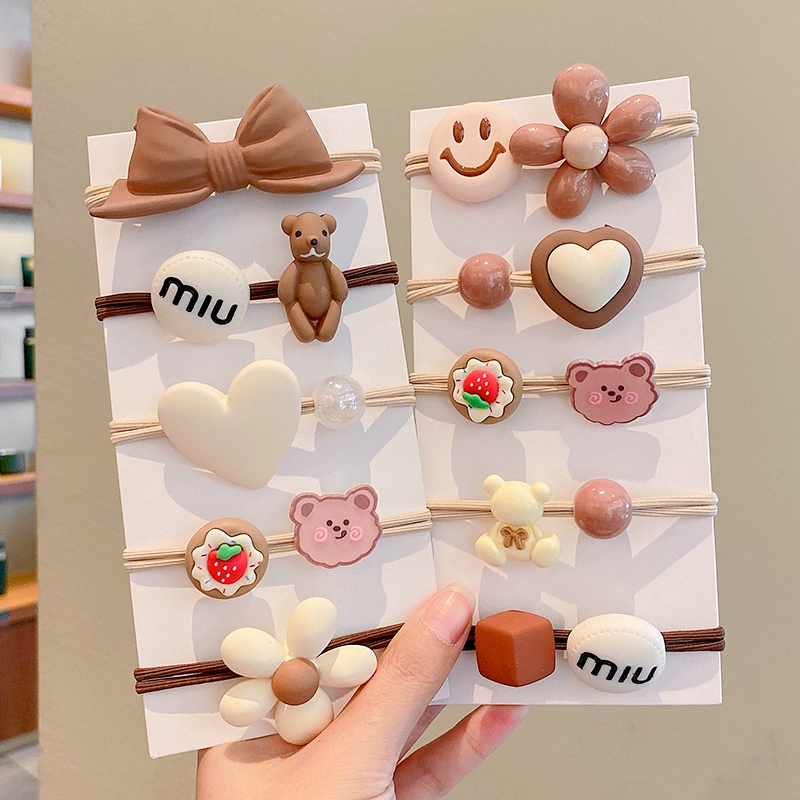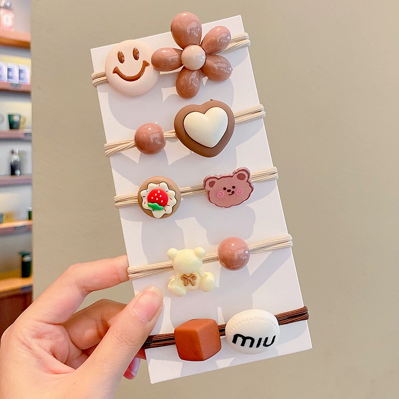 | nameOriginal | Milky brown girl's little bear high ponytail rubber band hair accessory |