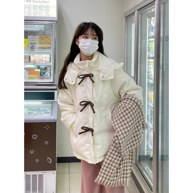 | nameOriginal | Milky White bow down jacket for women 2023 new short College Style 90 white duck down thickened coat |