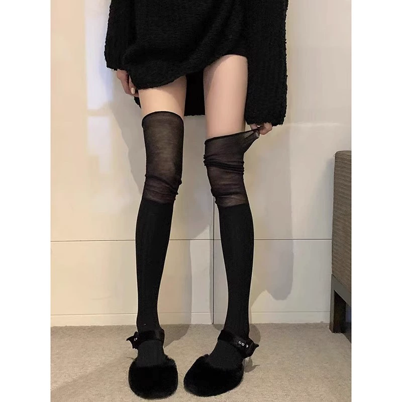 | nameOriginal | Milky white jk piles of socks over the knee for women in autumn and winter pure lust style splicing long boots socks slimming gray high socks |