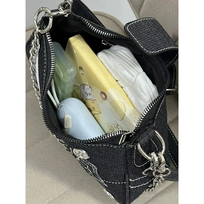 | nameOriginal | Millennium hot girl y2g star Denim underarm bag 2024 New retro button American portable chain messenger bag |