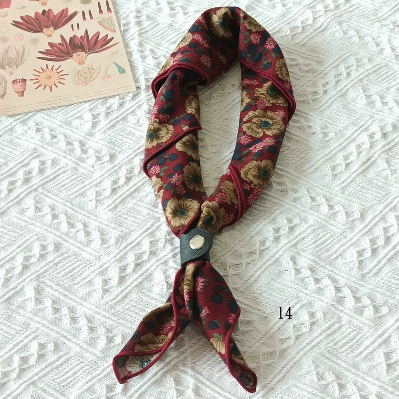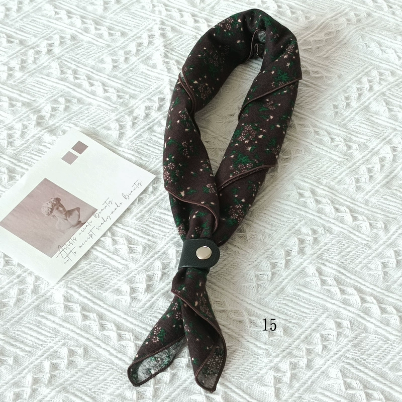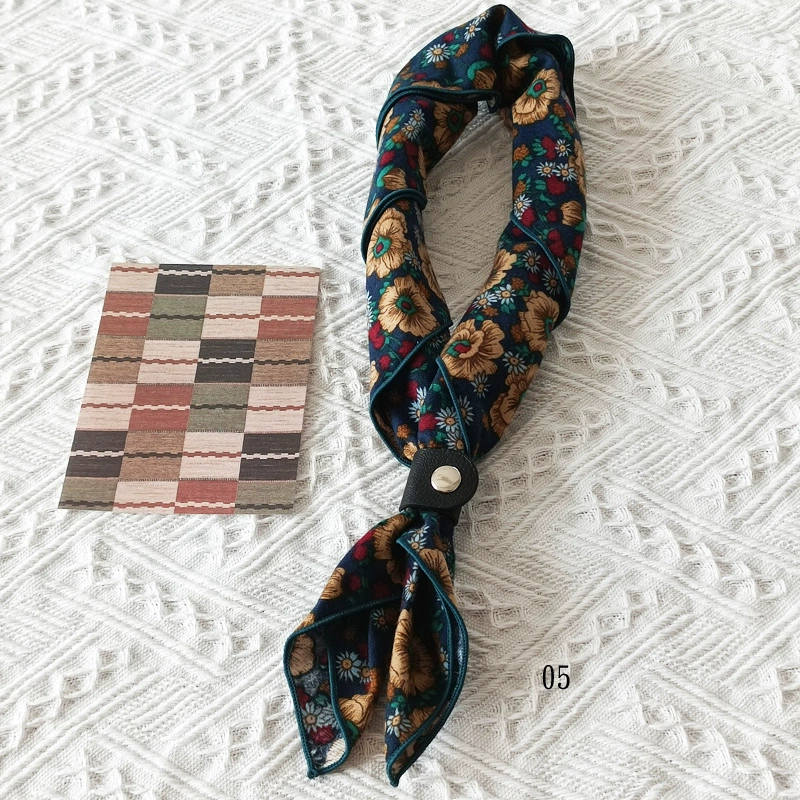 MIMI autumn and winter women’s retro floral navy blue and dark green scarf