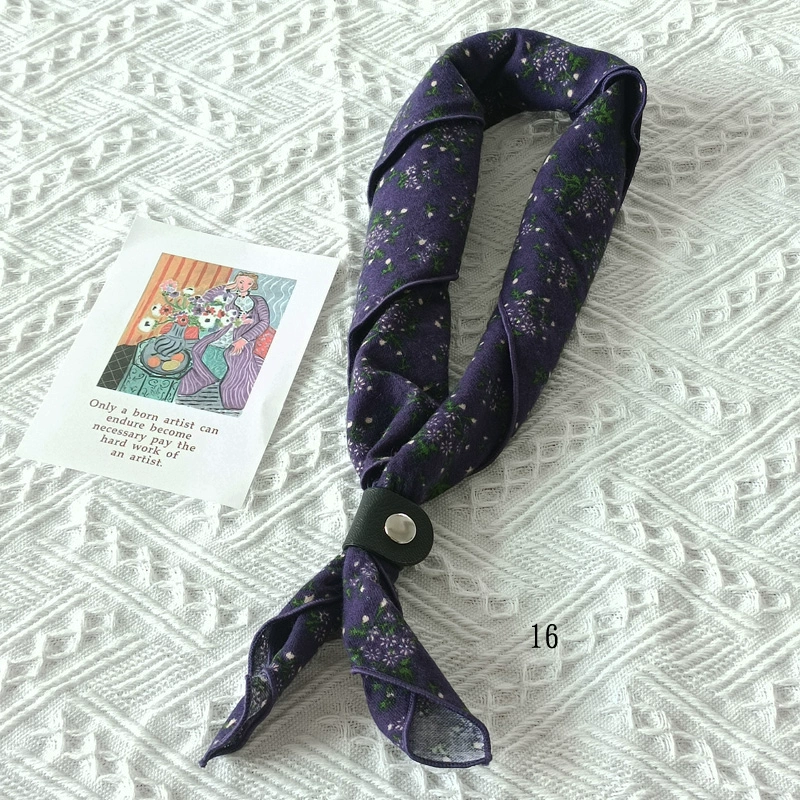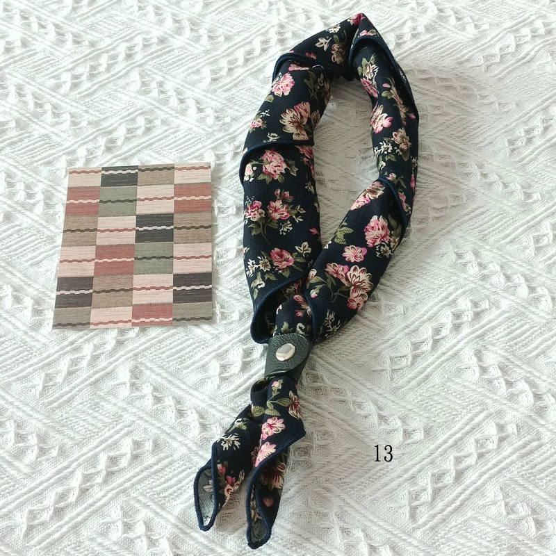 MIMI autumn and winter women's retro floral navy blue and dark green scarf