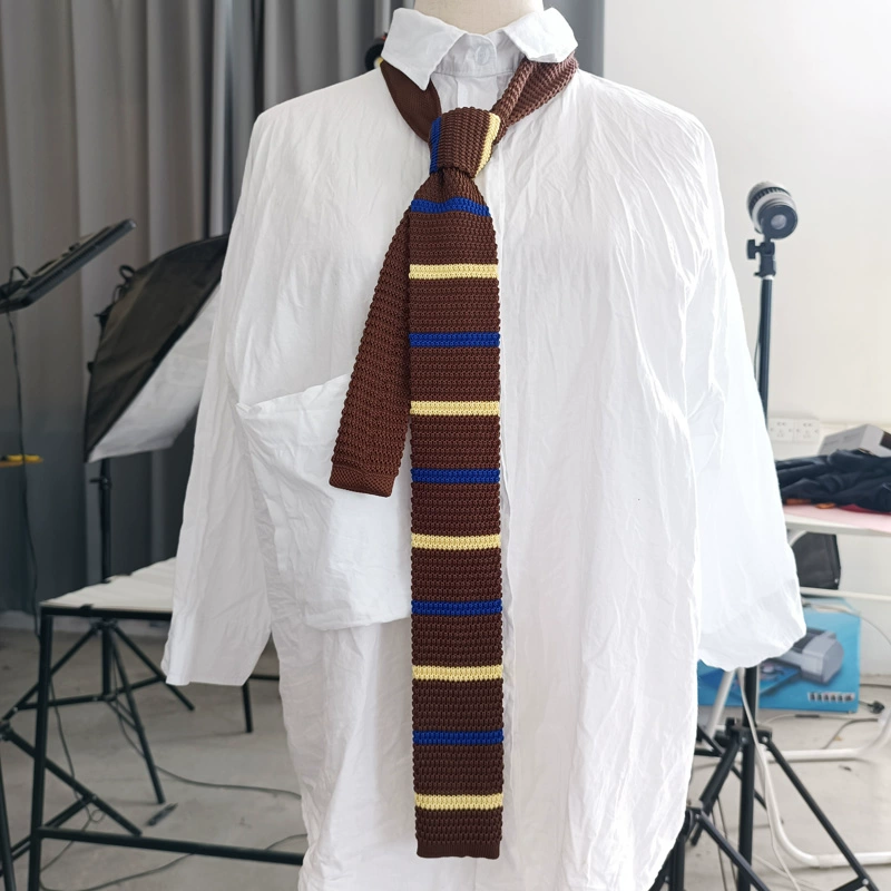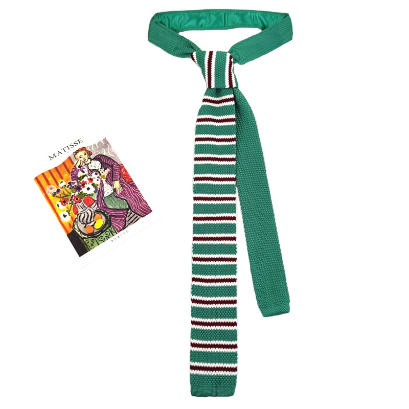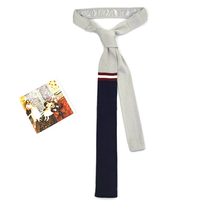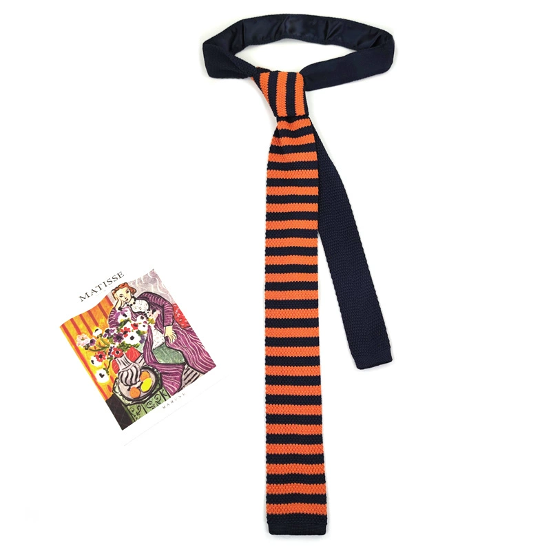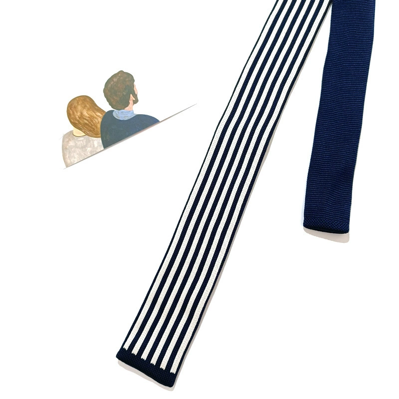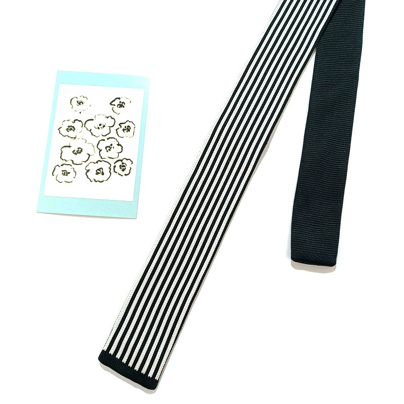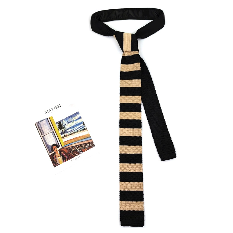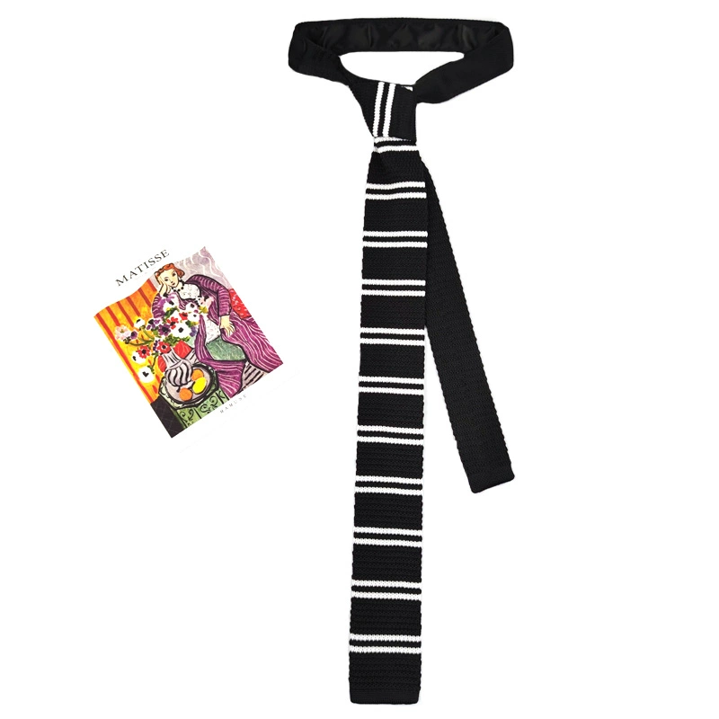 MIMI horizontal striped wool retro black and white flat tie