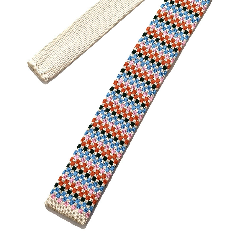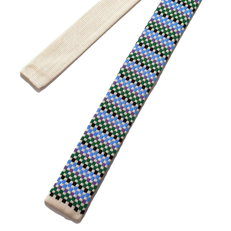 MIMI houndstooth horizontal striped wool retro tie