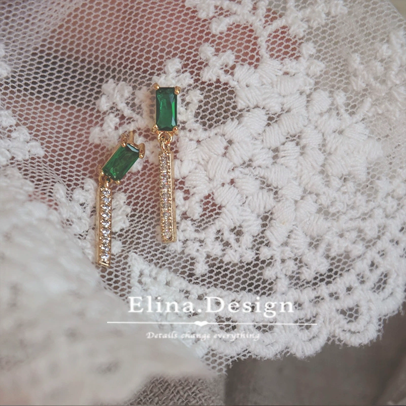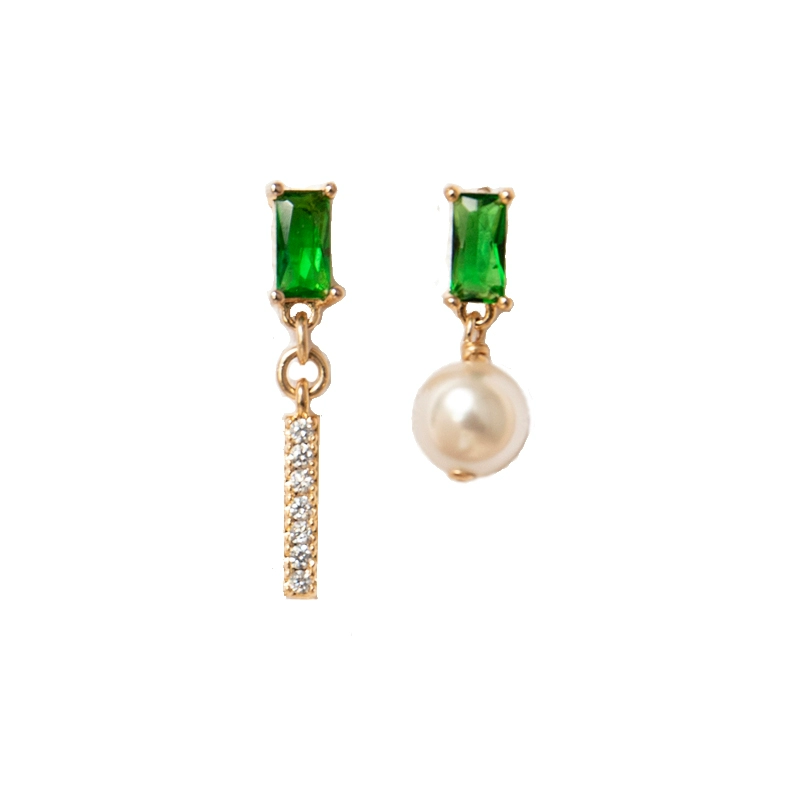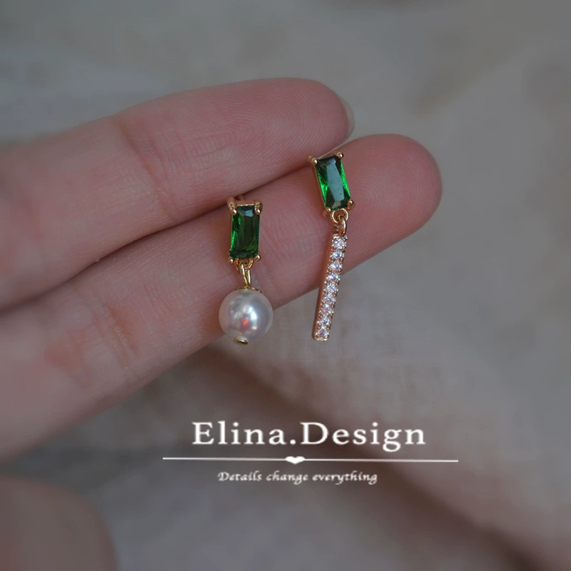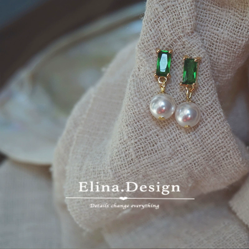MIMI s925 sterling silver French finely set emerald stone design earrings natural pearl earrings ear clips