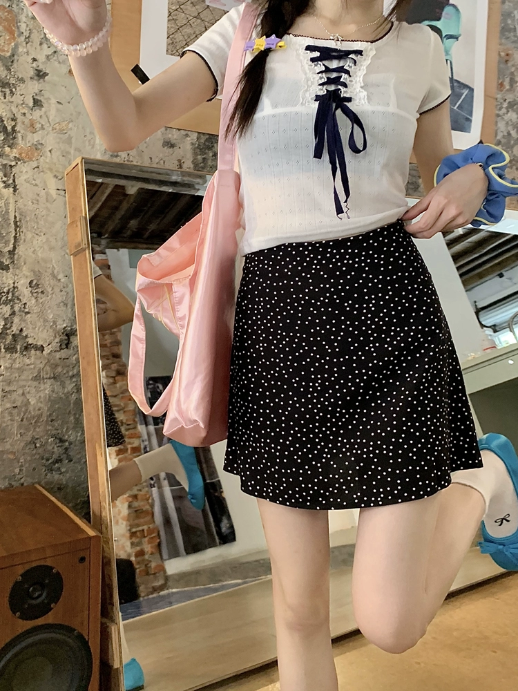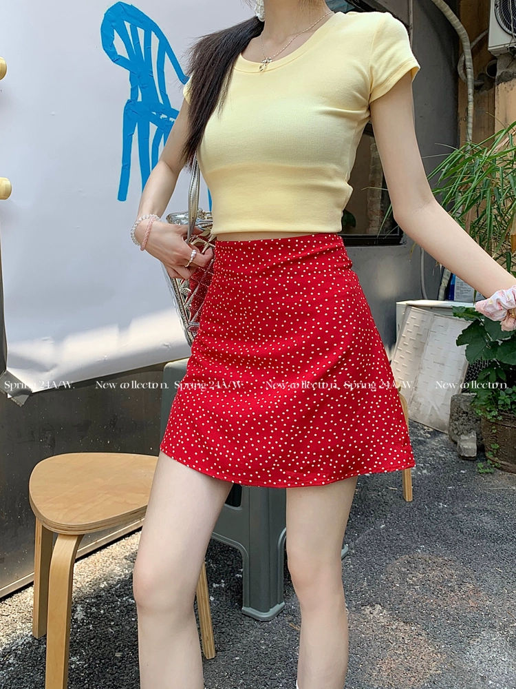 | nameOriginal | Mimuzi's homemade 2024 summer new high-waisted polka-dot A-line skirt for small women, versatile and sweet short skirt |